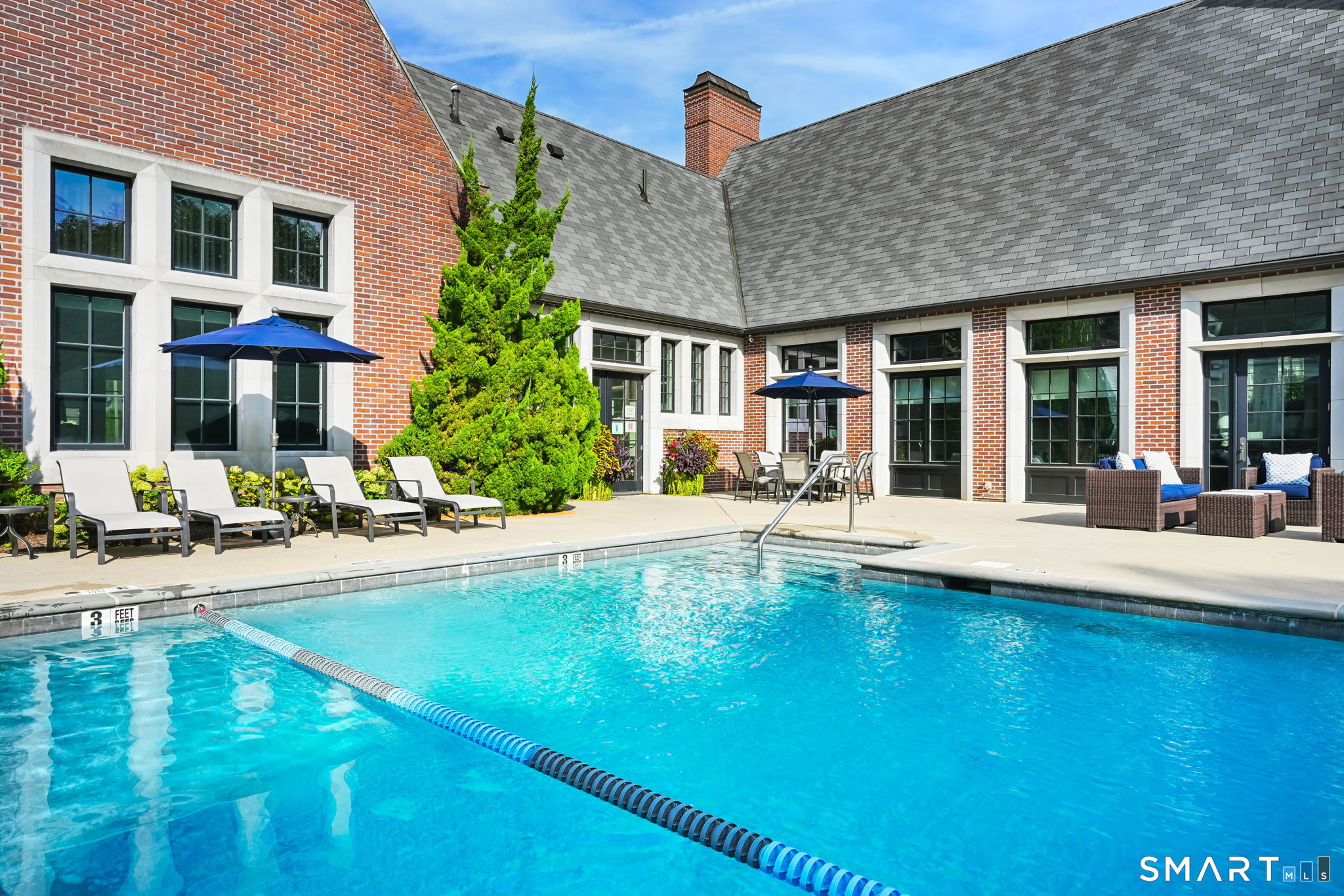 Palmer Hill! This highly desirable, luxury gated community is located on the Old Greenwich/Stamford border. Fabulous 2 bedroom/2 bath midrise condo with Rare Private Patio! This home has Many Remodeled and Upgraded Features Including Wood Floors throughout, Custom Lighting, 2 Remodeled Baths, a New Water Heater and HVAC System, Custom Hunter Douglas Window Treatments, Alarm System and Many More. See Improvement List. There are custom closets, an open plan, spacious gourmet kitchen with SS appliances and breakfast bar, living/dining room with a gas fireplace, large windows, and a French door to the Rare Private Stone Patio. The spacious primary en-suite bedroom has a custom walk-in closet and renovated bath. The 2nd bedroom with a spacious closet and 2nd renovated bath complete this wonderful home. A new washer and dryer are located within this home. 2 parking spaces are included in the indoor garage, as well as a storage unit and bike room. Amenities include a newly renovated clubhouse, pool, hot tub, fire pit, gym, yoga room above, and business center. This is a Dog Friendly community. Minutes to I95 and Metro North. Move Right In! Do Not Miss This Home!