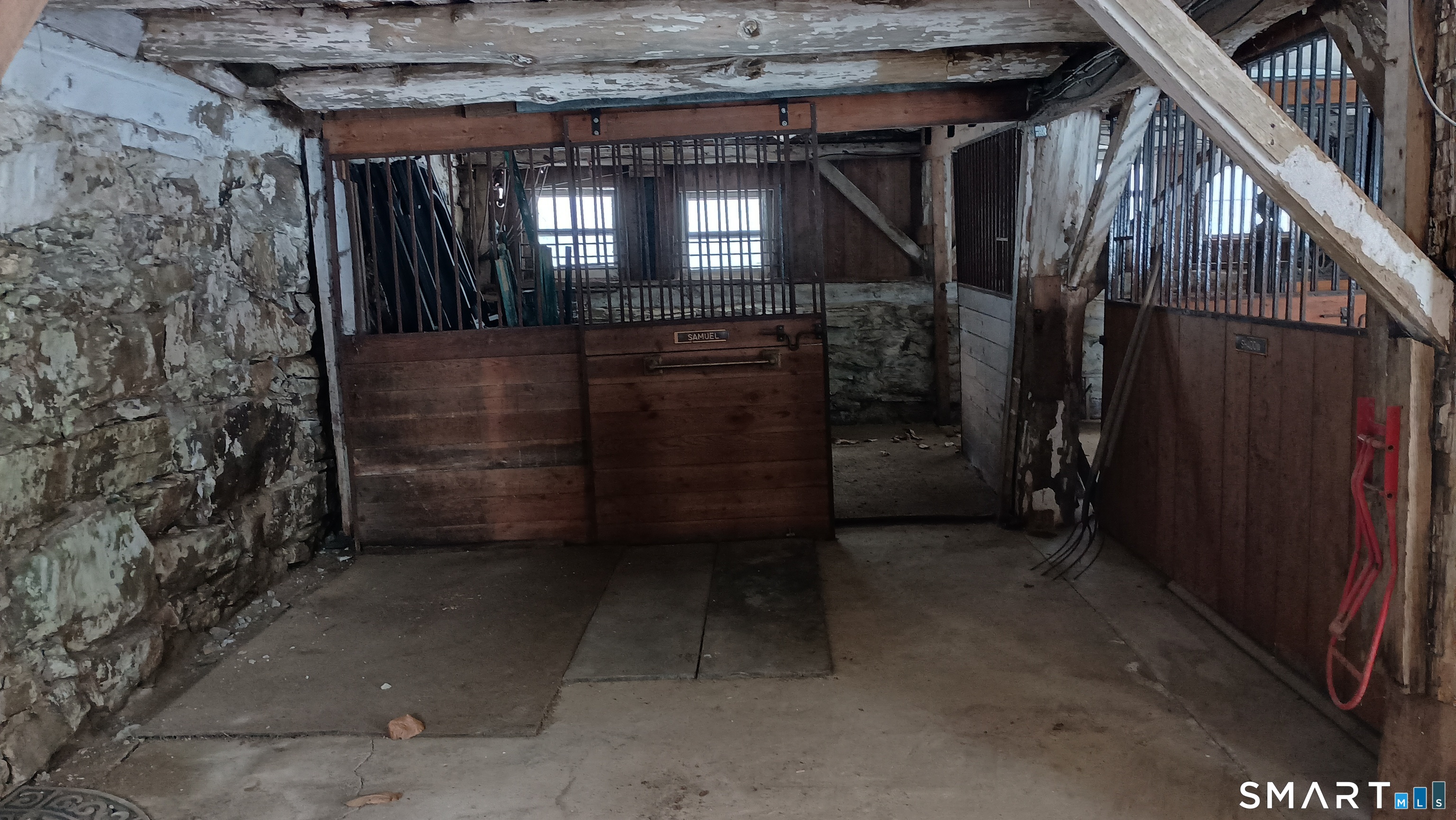 Cottage with post and beam Barn with loft on 15+ acres. Fields, woods, small pond, farm. Barn is 24x 36 overall and has 2 box stalls and a straight stall, hay or other storage a wash stall, and a finished loft apartment with kitchen, living areas, bedroom and bathroom. Options include practicing agriculture, hunting, relaxing and building an estate. Additional land available for a house. See MLS Listing #24148536. This property is presently known as 2579 Litchfield Rd, in Watertown land records (see map). 2579 Litchfield Rd is property south of 2581. The lot lines have been adjusted and new map will be filed with sale at closing. 2579 is not for sale.