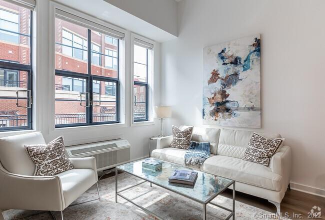 Live it up in the heart of West Hartford's Blue Back Square and The Center. This 1 bed room unit is updated with new flooring, lighting with dimmers, freshly painted & new ceiling fan. The new look is trendy, light and bright! Free covered garage parking right below, same elevator up and down. Kitchen is equipped with granite counter tops, warm wood cabinets, dish washer, disposal & fridge. Heated bathroom floors, vinyl flooring in kitchen, living area, & the bedrooms. Ceilings are 11'6", Exposed brick wall. Full size washer and dryer in the unit. Storage is available to rent as well. BEAUTIFUL new fitness center off lobby included with your rent! This is a 1 year lease, 1 month rent upfront, 1 month security deposit is required. Convenience at it's best, walk to movie theater, dinner, coffee, grocery stores, library and so much more! Best location in town!! Credit check and application are required.