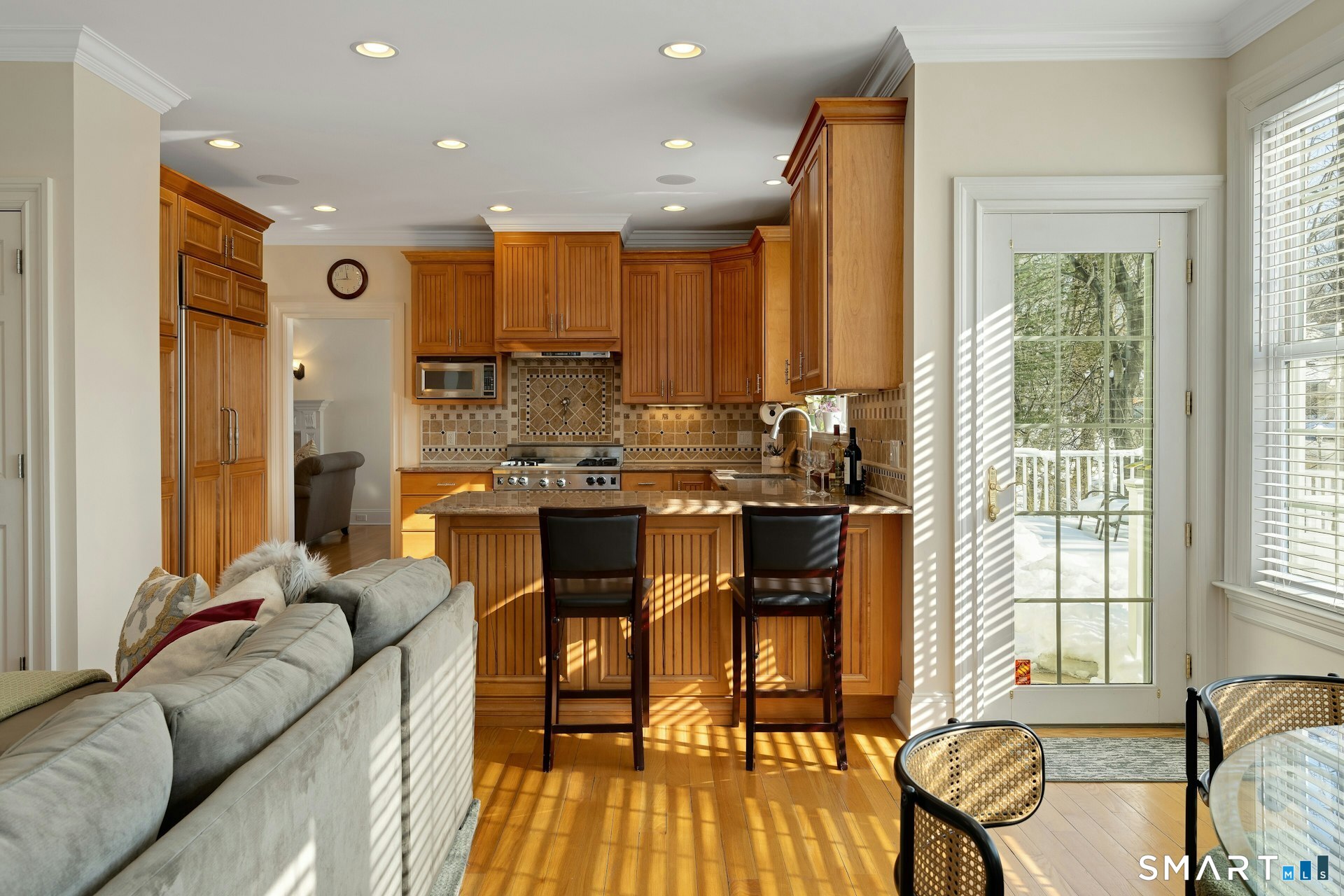 Thoughtfully updated for the way people live today, this expansive 5-bedroom Colonial offers generous space, natural flow, and flexible living areas throughout. The home opens to a large foyer with high ceilings and a beautiful staircase that immediately creates a sense of openness. The living room flows into the dining room, both filled with natural light and well suited for everyday living and entertaining. The kitchen has custom cabinetry, a Wolf gas range, and a Sub-Zero refrigerator, with access to the deck for easy indoor-outdoor living. A first-floor office provides a quiet and functional work-from-home space. Upstairs, the primary suite includes two walk-in closets, along with three additional bedrooms on the second level. The third floor adds even more versatility, offering space that can be used as a bedroom suite, playroom, or entertainment area. The lower level provides additional usable space and works well as a gym, movie room, or recreation area. Located on a quiet street in Norwalk, near Rowayton and close to beaches, shopping, and restaurants, this home provides generous space, a practical layout, and room to grow.