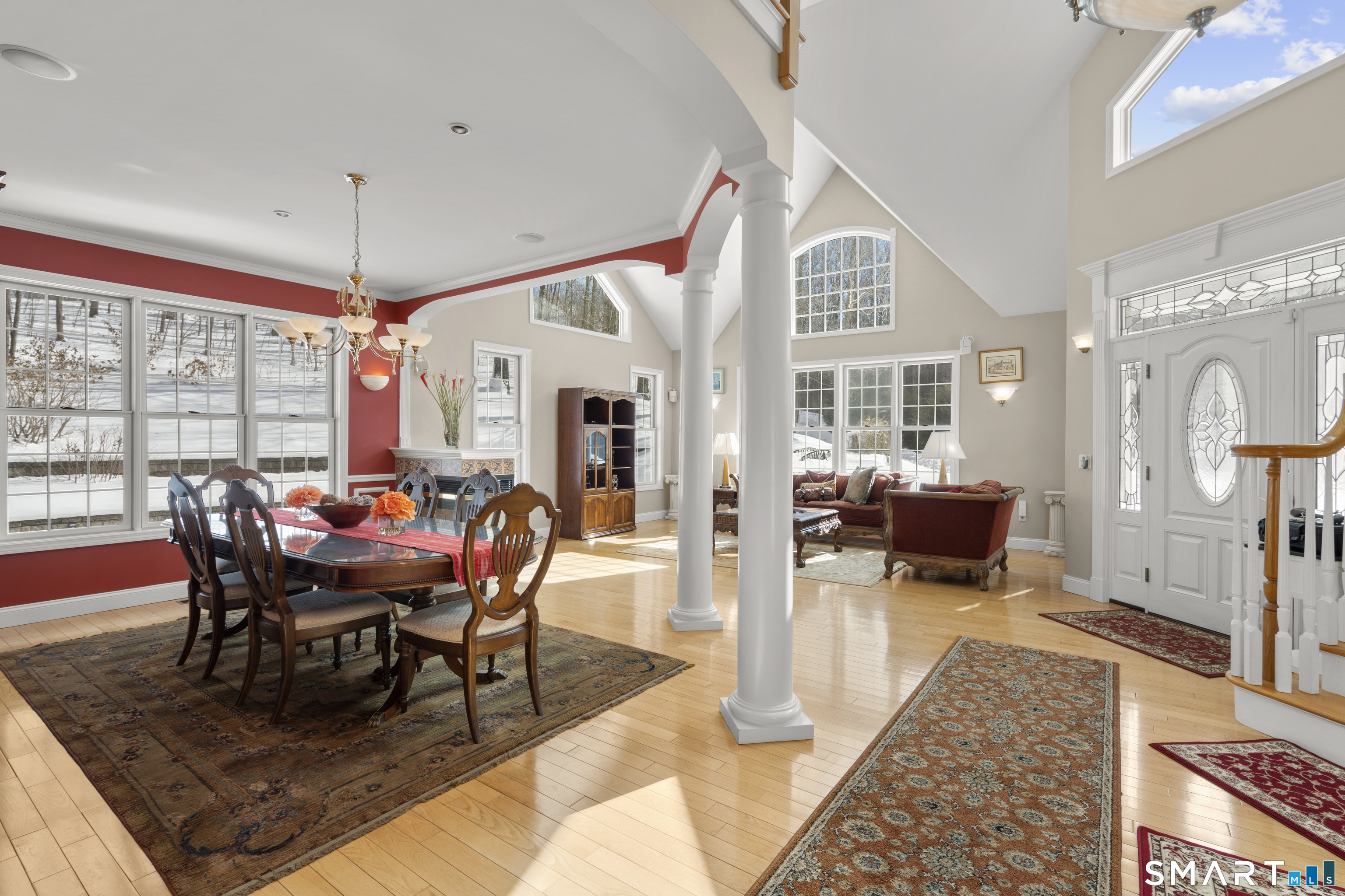 Exceptional custom contemporary set on a rare 9.4 acre private, interior lot, just minutes to Litchfield center! Offering approx. 3,400 sq ft, this home showcases custom woodwork and architectural detailing throughout. Upon entry, you're welcomed by a formal living room & dining room, defined by hardwood floors, soaring cathedral ceilings, a gas fireplace, & elegant custom pillars that create a striking first impression and timeless sense of scale. The home then flows seamlessly into the eat in kitchen, featuring a center island, granite countertops, stainless steel appliances, &a tray ceiling-ideal for both every day living & entertaining. The spacious sun room off of the kitchen offers sliders leading to an 18x34 heated in ground pool with a brand new liner & jacuzzi, all surrounded by peaceful, wooded privacy. A main level primary suite with full bath and convenient main level laundry add ease and functionality. The second floor features a loft overlooking the living room & dining room, three bedrooms, and an additional living room with gas fireplace, and wet bar. An additional room on the second level could easily function as a home office or use your imagination! 3.5 baths have all been remodeled. Additional features include a 3 car garage(3rd bay, negative pressure, dust free) central air (new first floor unit), 4 zone heat, central vac, abundant storage with tons of closets and pull down attic, central speaker system with subwoofer, & a 2500-watt generator.