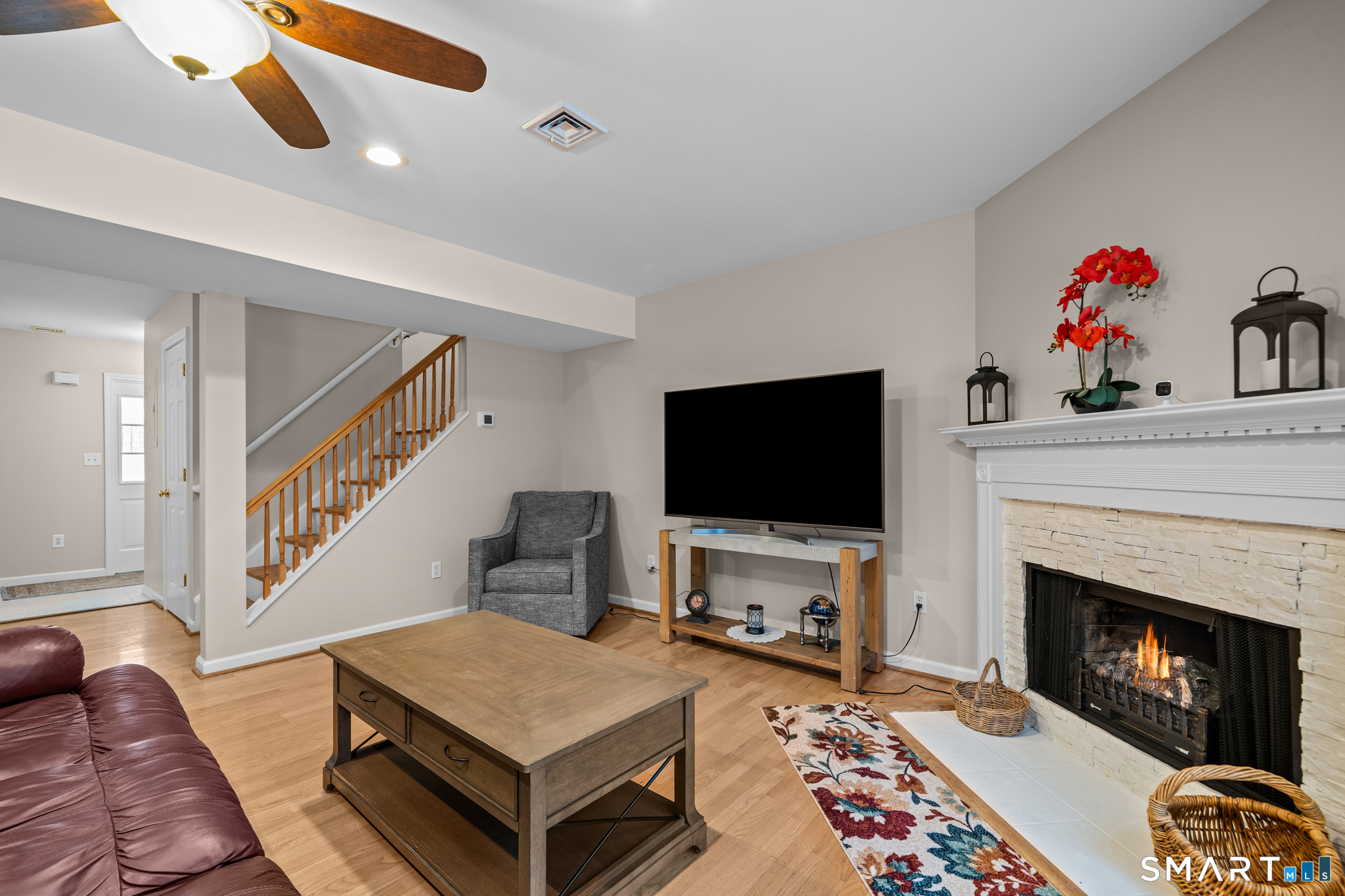 Welcome to 374 Meridian Street Extension, Unit 68 - a wonderful, sunny 3-bedroom, 2.5-bath condominium located in the desirable Kinnesbrook community offering exceptional value and flexible living across three spacious levels. This oversized townhouse-style unit features an open-concept main level with a fantastic kitchen and living area complete with a wood burning fireplace and central air, creating a comfortable space ideal for everyday living or entertaining. The main living area leads out to a cozy back deck overlooking the backyard-perfect for enjoying morning coffee or hosting guests. A convenient half bath on the first floor adds functionality for guests. The second floor features a generously sized primary bedroom, an additional great-sized bedroom, a second full bath, and a conveniently attached laundry area. The third floor offers flexible living space that could be used as a third bedroom, den, home office, or workout space-the possibilities are endless. Additional features include an attached 1-car garage, private driveway, and assigned parking for multiple vehicles, along with nearby visitor parking for added convenience. This well-maintained home is a great fit for first-time homebuyers, downsizers, or growing families seeking flexible living options in a convenient location close to major highways, shopping, dining, golf, beaches, and employers including Electric Boat, Pfizer, and Avery Point.