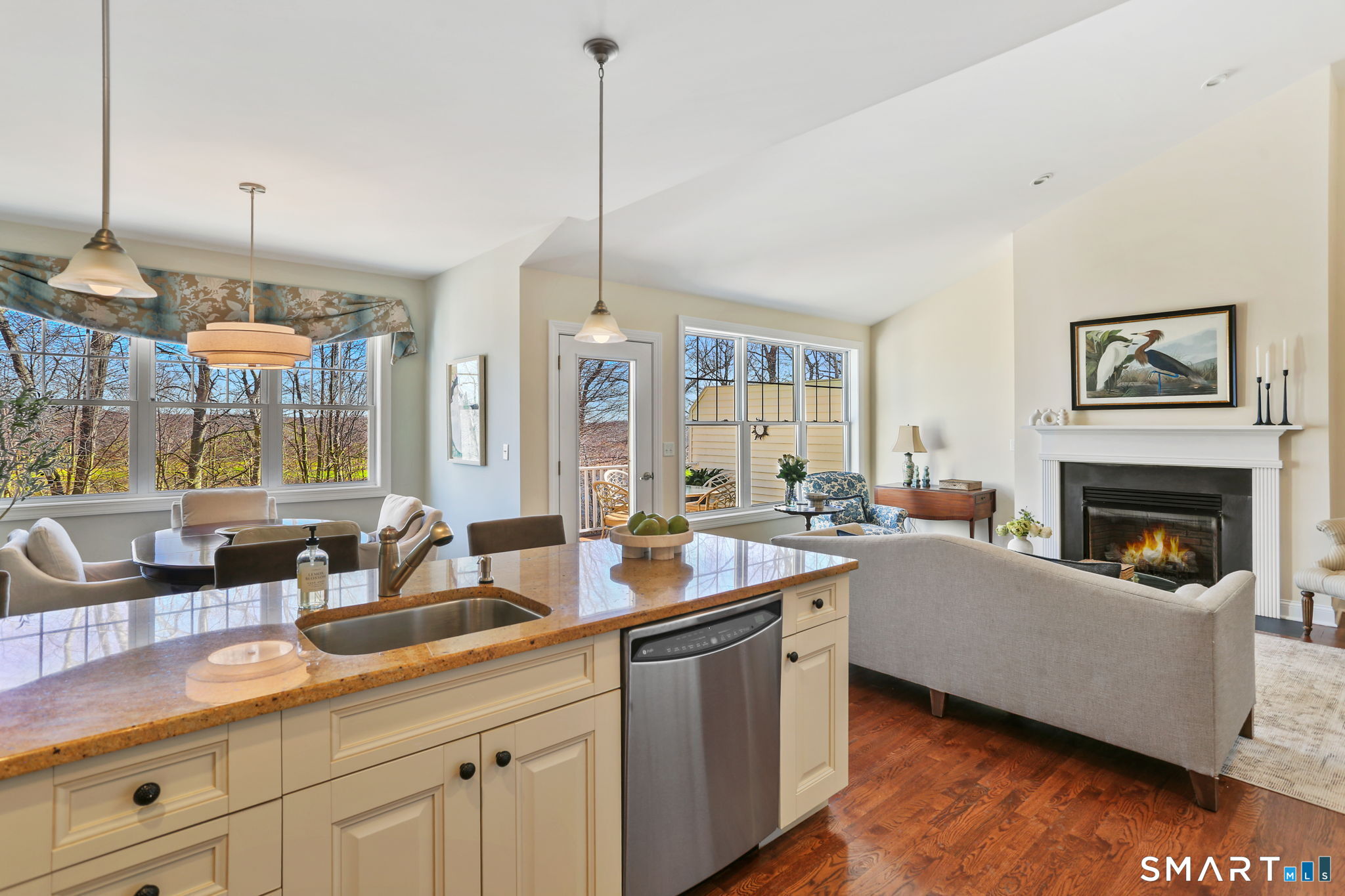 Step inside and feel it immediately - space, light, and just the right amount of understated elegance. This expansive condo offers something rare: the luxury of choice. A primary suite on the main level or upstairs - both equally inviting, both finished with rich hardwood floors, generous walk-in closets, and double-sink vanities designed to make mornings feel effortless instead of rushed. The heart of the home is pure wow. Vaulted ceilings soar above an open-concept living space anchored by a warm, welcoming fireplace. Sunlight pours in, illuminating a fresh, modern palette that feels crisp yet calming. The oversized island - with seating for four - is made for lingering breakfasts, wine with friends, or late-night takeout that somehow tastes better here. And just beyond, seasonal views of the Housatonic River add a quiet, ever-changing backdrop. Downstairs, the finished lower level expands your possibilities - media room, gym, office, guest retreat - complete with a half bath and abundant storage that keeps life beautifully organized. A two-car garage seals the deal, offering convenience without compromise. Spacious. Sophisticated. Effortlessly livable. This isn't just a condo - it's a home that knows how to impress without trying too hard.