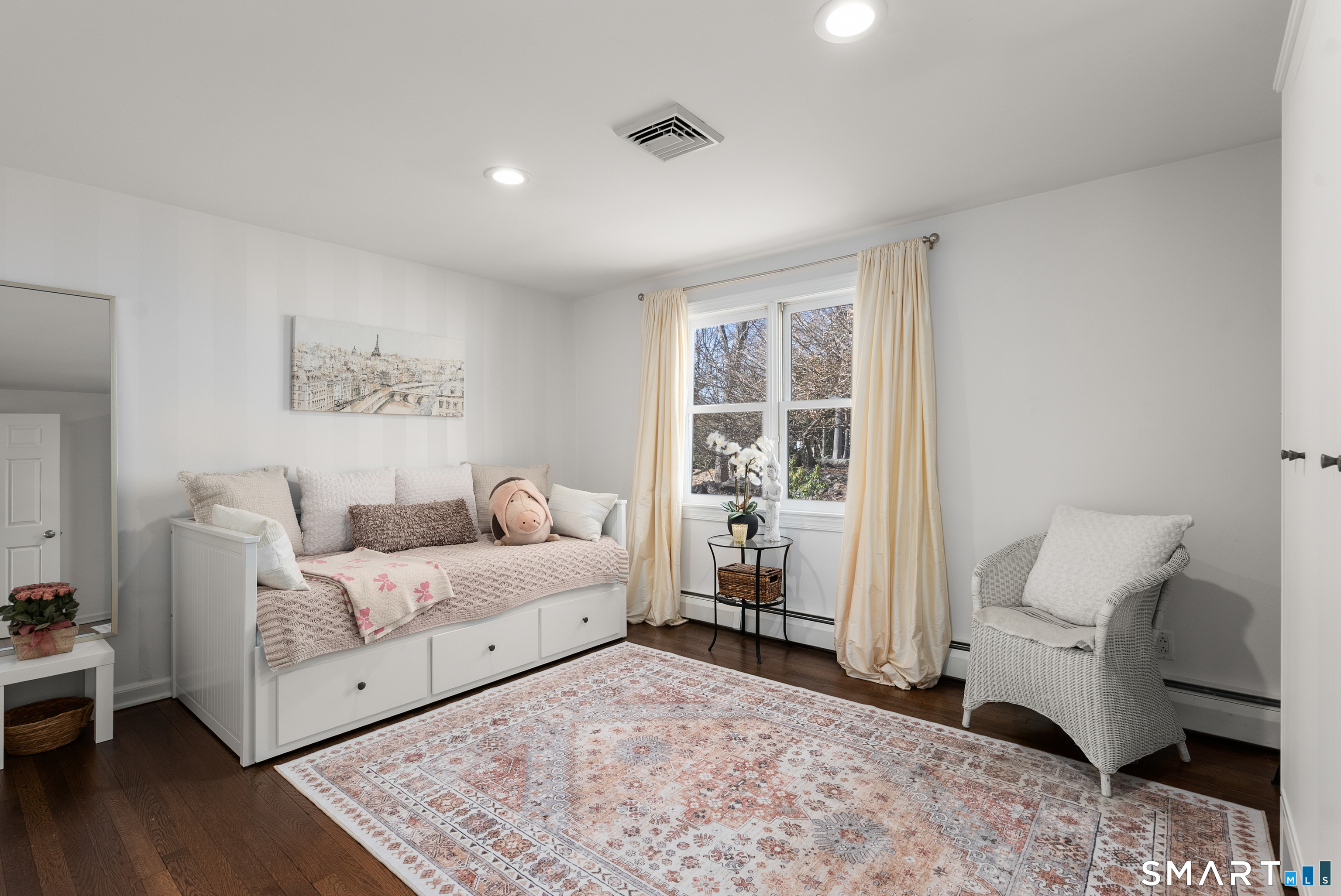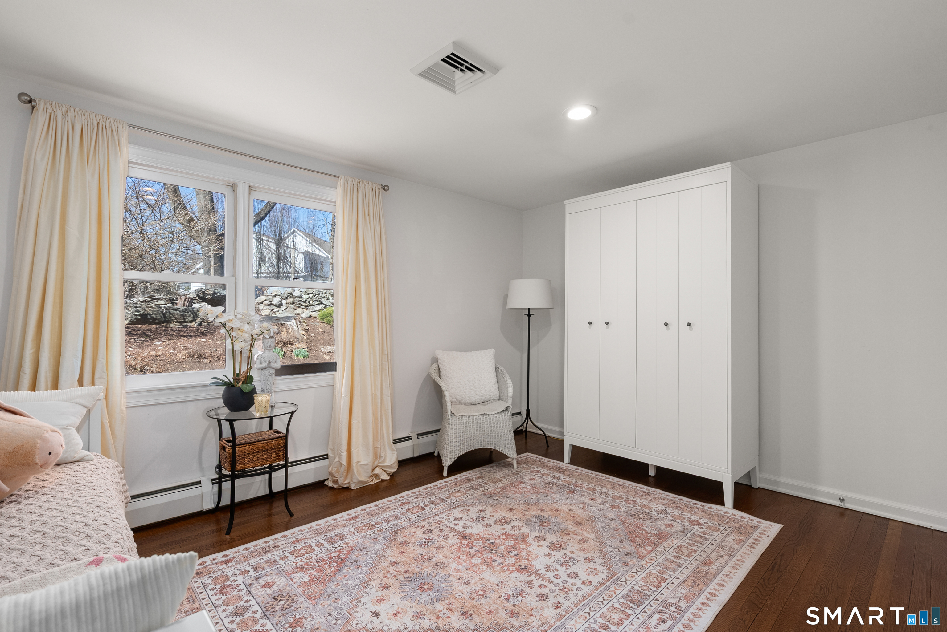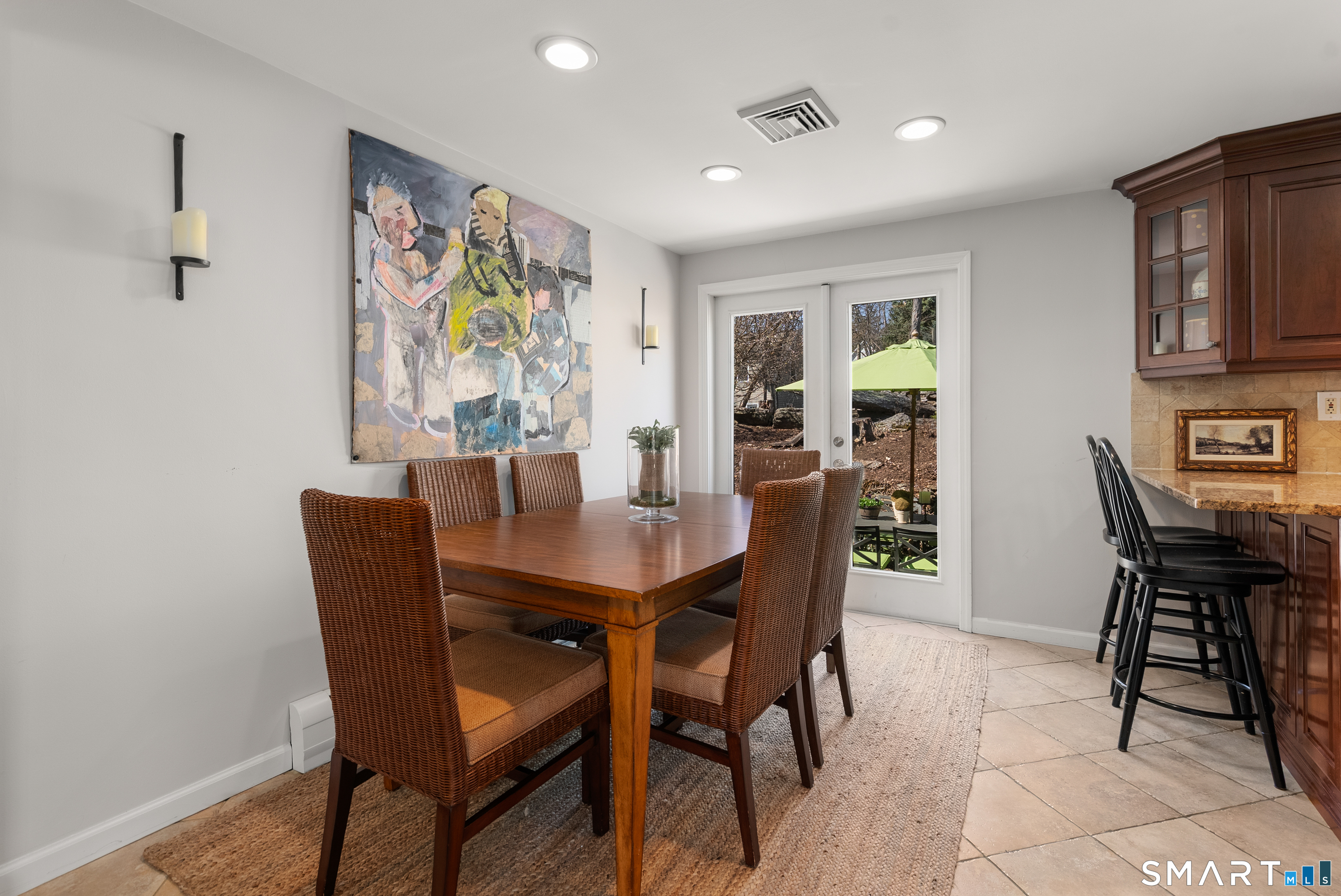 Tucked on a cul-de-sac in the heart of Long Lots, this light-filled ranch offers the ease of single-level living within a thoughtfully composed floor plan. Well-proportioned rooms and seamless flow create a home that feels both comfortable and refined. The living room, framed by a large picture window, is bathed in natural light throughout the day and anchored by a custom fireplace surround. An open kitchen with granite counters connects effortlessly to the dining room, offering an ideal setting for everyday living and relaxed entertaining. Three bedrooms and two full baths are arranged with privacy in mind. The primary suite includes a spacious bath, generous closet space, and an adjacent office, sitting room, or playroom. Two additional bedrooms with custom closet built-ins and a well-appointed hall bath complete the interior layout. Outdoor living is equally inviting. A flagstone patio extends into beautifully landscaped gardens with dedicated grilling and dining areas, complemented by a fire pit and curated plantings that enhance both privacy and charm. Ideally situated in a central location, 20 Hickory Drive provides convenient access to town, train, beaches, and schools. An exceptionally well-cared-for home offering a quiet, established setting and the ease of a truly connected Westport lifestyle.