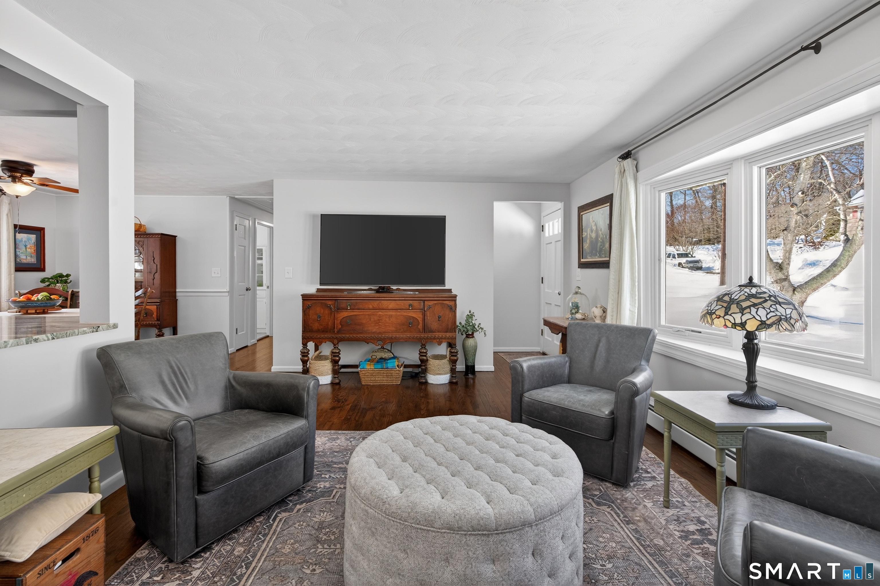 Minutes from Downtown Mystic located in an established neighborhood. New kitchen open to floorplan. This home offers an additional 600 square feet of finished space .An offic/bedroom with two windows a full closet .A backyard and patio with gardens. The interior updates from the large bay window to the bathrooms make this home turnkey.