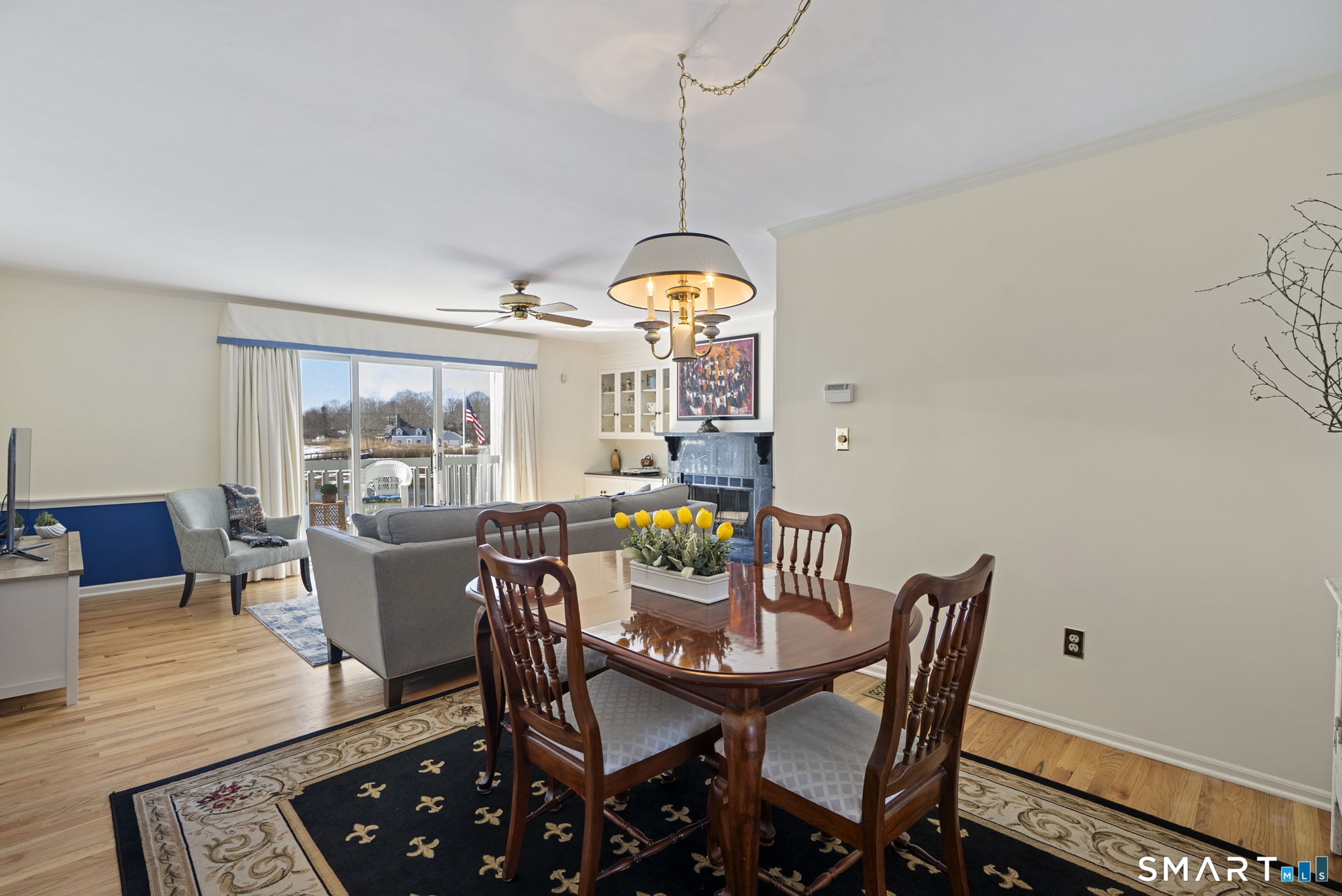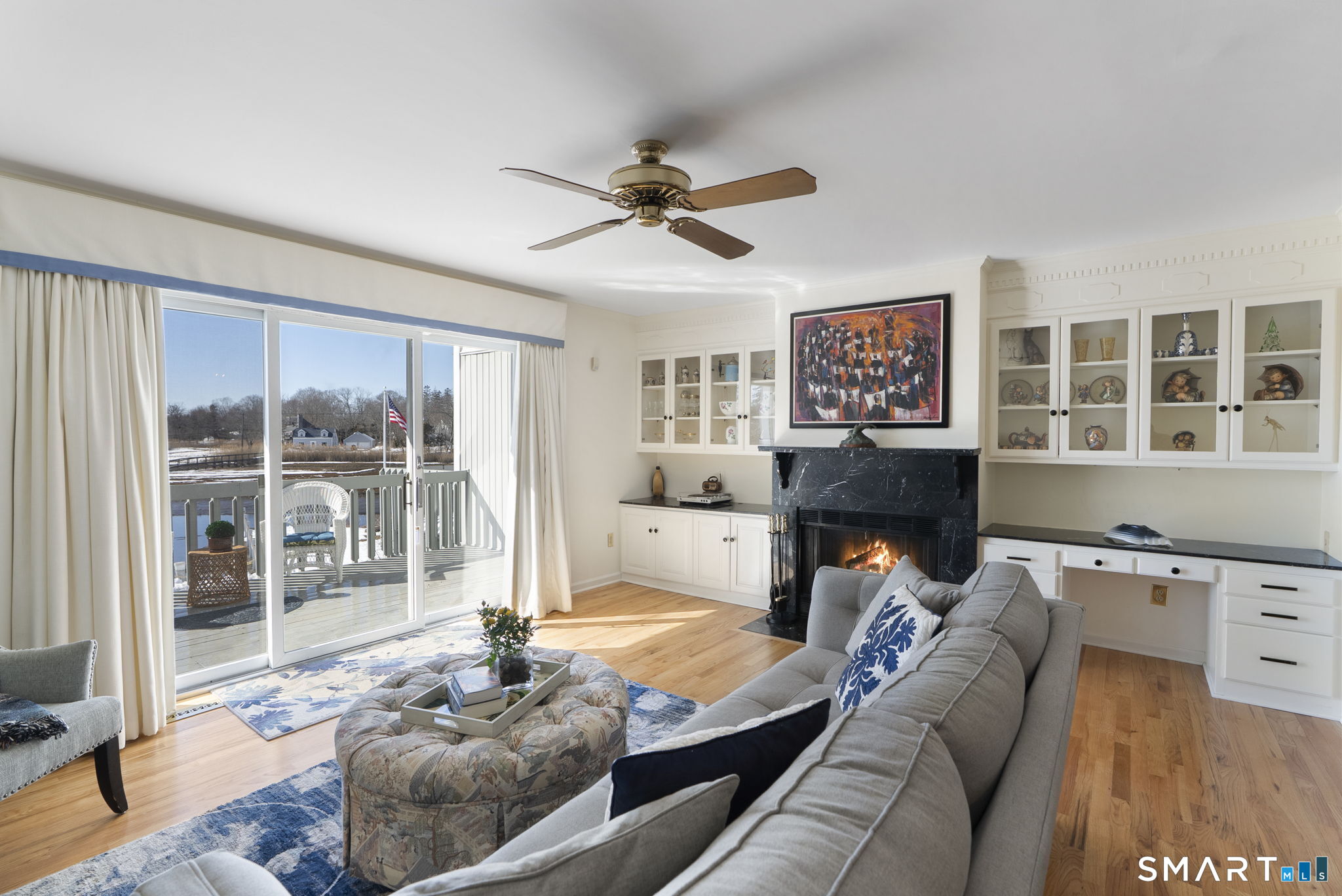Your chance to own in highly desirable Oyster River Landing-just steps from a private marina and the community's inground pool. This beautifully maintained three-level townhouse offers comfortable luxury, expansive water views, and a lifestyle that blends coastal living with everyday convenience. A sun-filled home features seven rooms, including 2 bedrooms, 2 full bathrooms, 1 half bath, a dedicated office/flex room, and a one-car garage. Step inside to hardwood floors and an open living/dining area anchored by a wood-burning fireplace, built-in cabinetry, and a custom desk area. Large sliders draw you toward the private deck, where sweeping water views and an electric awning create the perfect setting for morning coffee or sunset cocktails. The remodeled chef's kitchen features granite countertops, panel-front appliances, hardwood flooring, and a built-in breakfast area-ideal for casual dining. Upstairs, you'll find 2 well-appointed bedrooms, each with its own en-suite bathroom. The primary suite offers two walk-in closets, an updated bath, and serene views of the water. The 2nd bedroom also includes a walk-in closet and private en-suite bath perfect for guests. A fully finished lower level adds fantastic bonus space, including a large recreation room, a cedar closet, an office/flex area, and an additional laundry area. Oyster River Landing is perfect for anyone seeking a waterfront lifestyle in the heart of Old Saybrook with its marina, pool, and spectacular views.