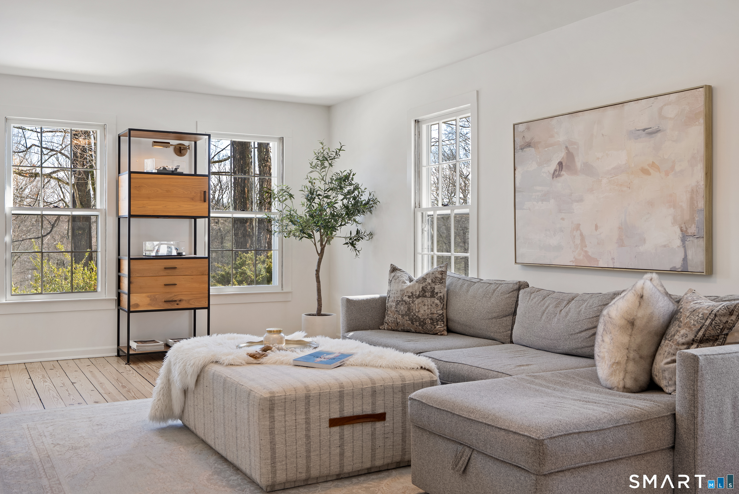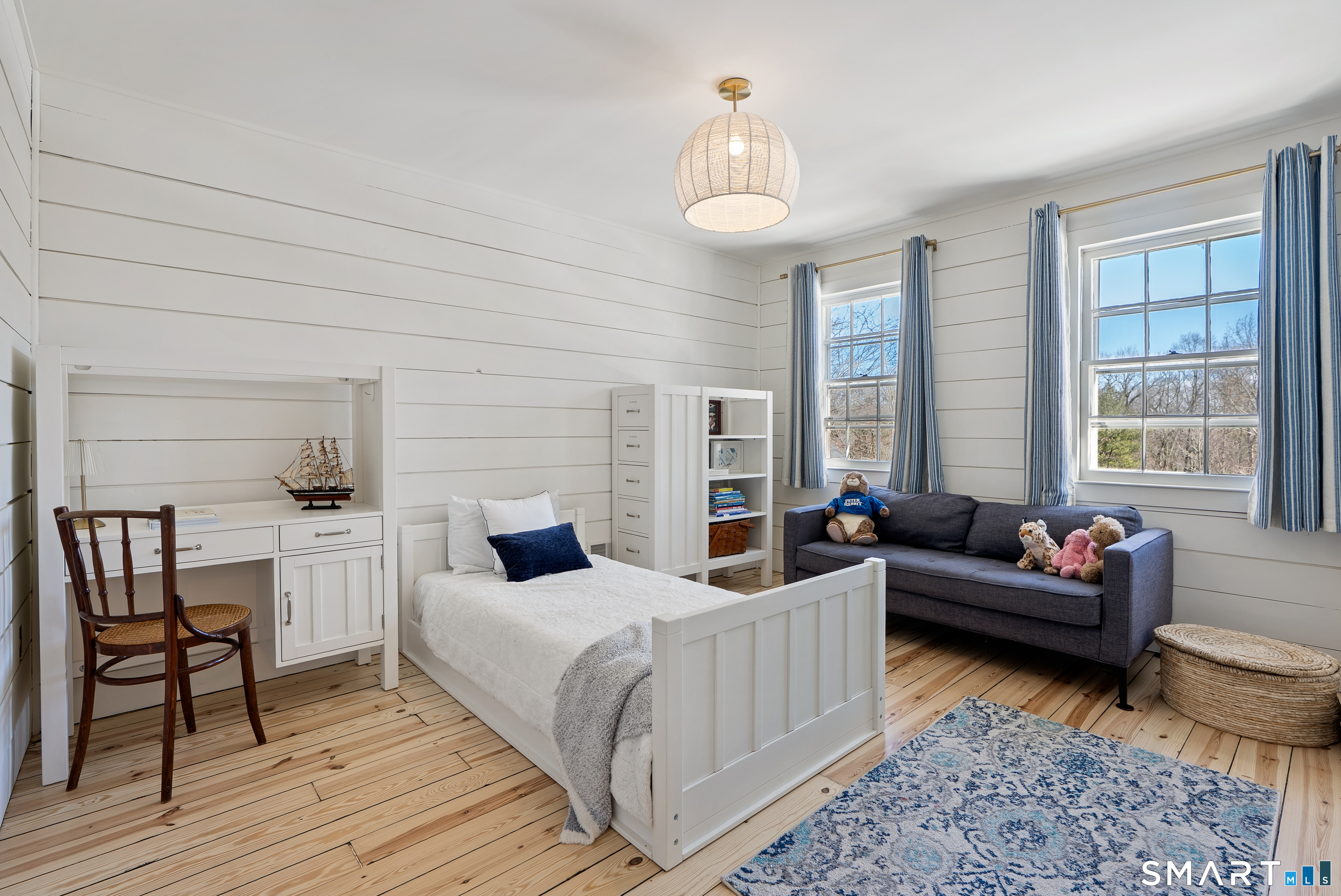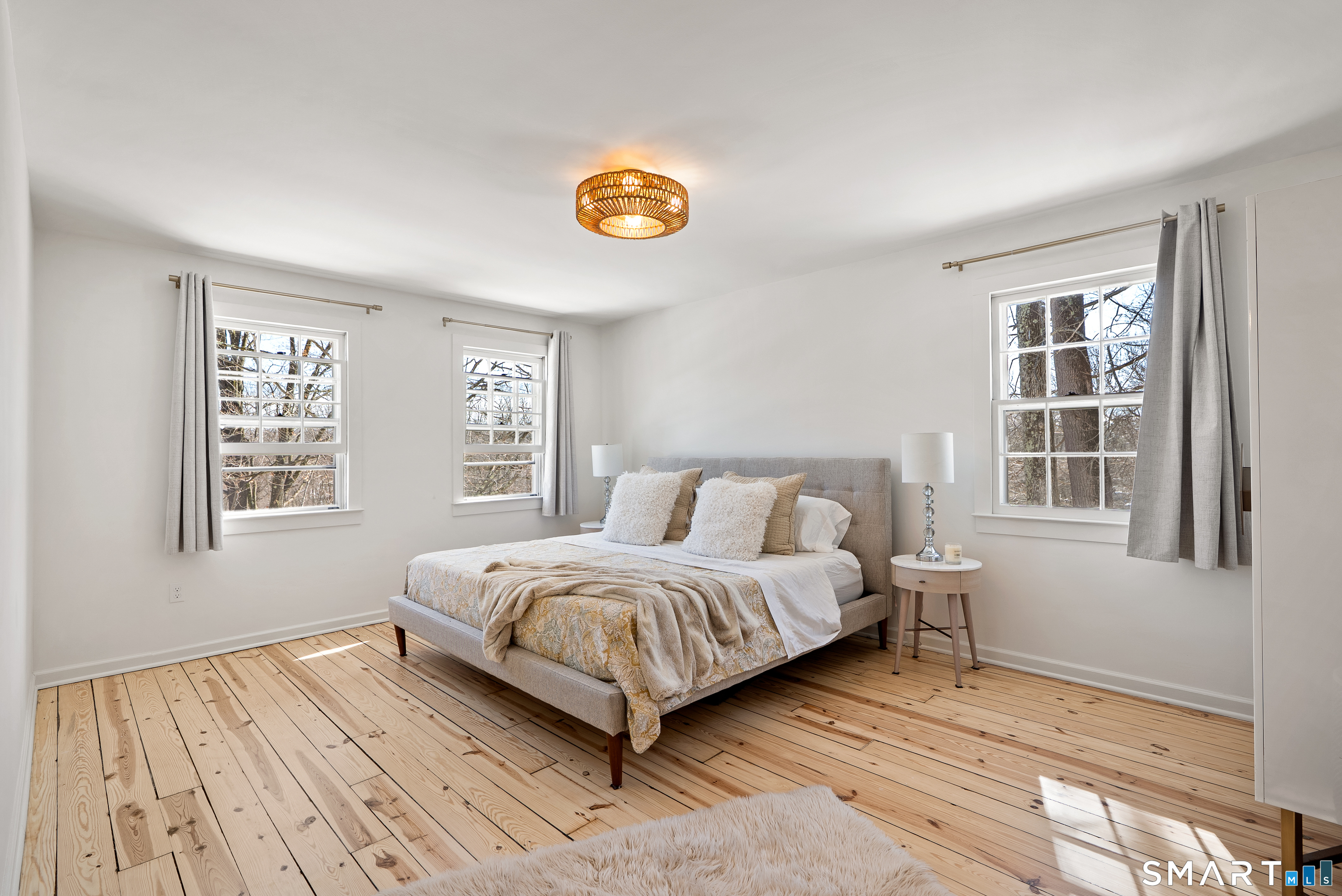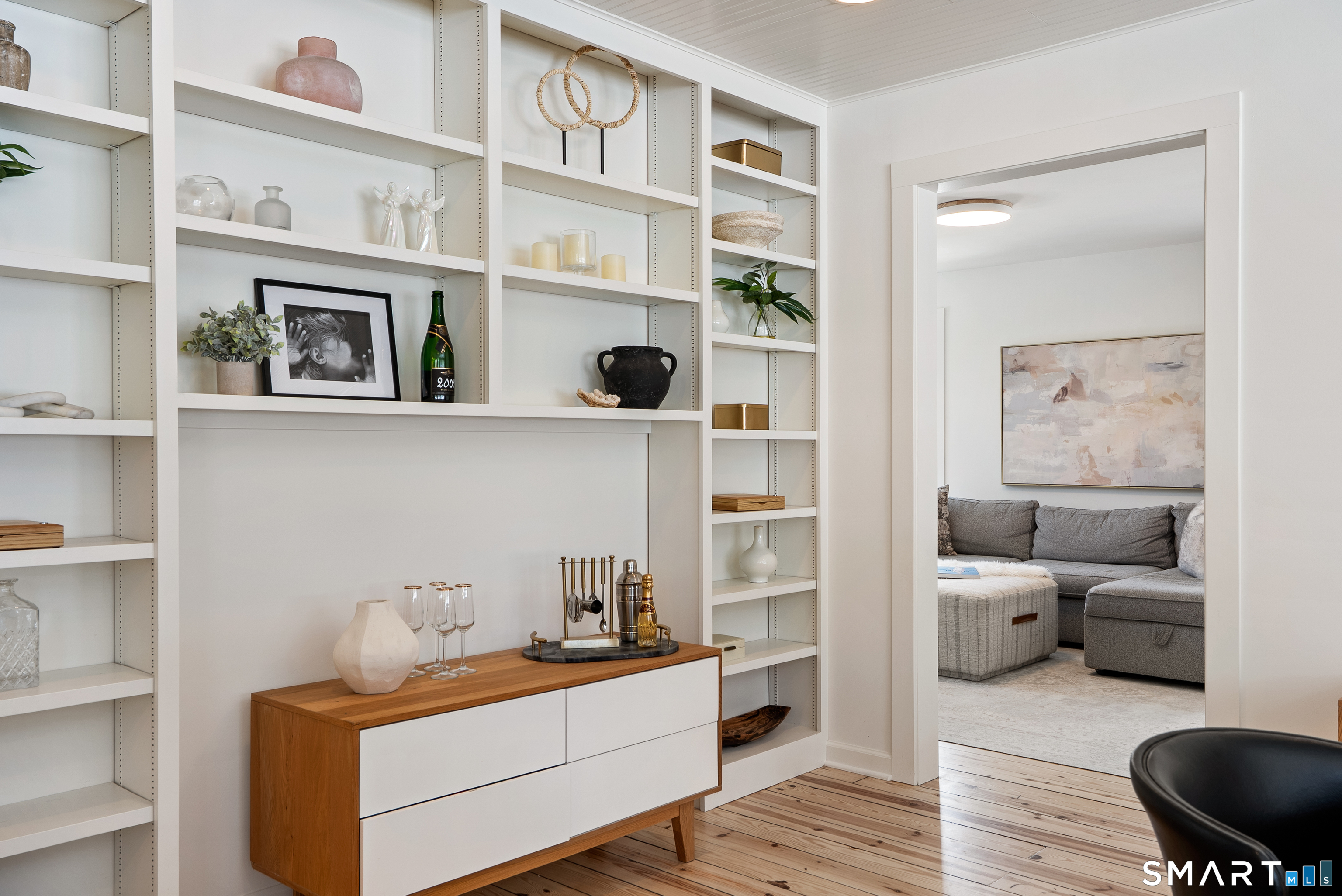 Perched above the surrounding homes, 7 Shaw Drive offers exceptional natural light, added privacy, and a warm, move-in-ready living experience in the heart of Simsbury. Thoughtfully renovated by owners who originally planned to stay long term, the home blends classic New England charm with refined modern design. Inside, you'll find custom-refinished hardwood floors, freshly painted interiors, custom shiplap wall paneling in several rooms, and designer light fixtures installed throughout much of the home, creating a cohesive and elevated feel. The updated bathrooms feature quartz countertops and designer fixtures, while the fully renovated kitchen showcases quartz countertops, a farmhouse sink, custom tile backsplash, high-end appliances, and premium unlacquered brass fixtures and hardware. Major improvements have already been completed, including a brand-new roof, full exterior repainting, and a newly constructed driveway with expanded parking at the top of the property, offering convenient space for multiple vehicles and guests. The home also includes a professional-grade whole-house water softener and filtration system, improving water quality while protecting plumbing fixtures and appliances. A fireplace-anchored dining space and welcoming layout make the home ideal for both everyday living and entertaining. Outside, the elevated setting creates a peaceful backdrop for relaxing or gathering with friends.