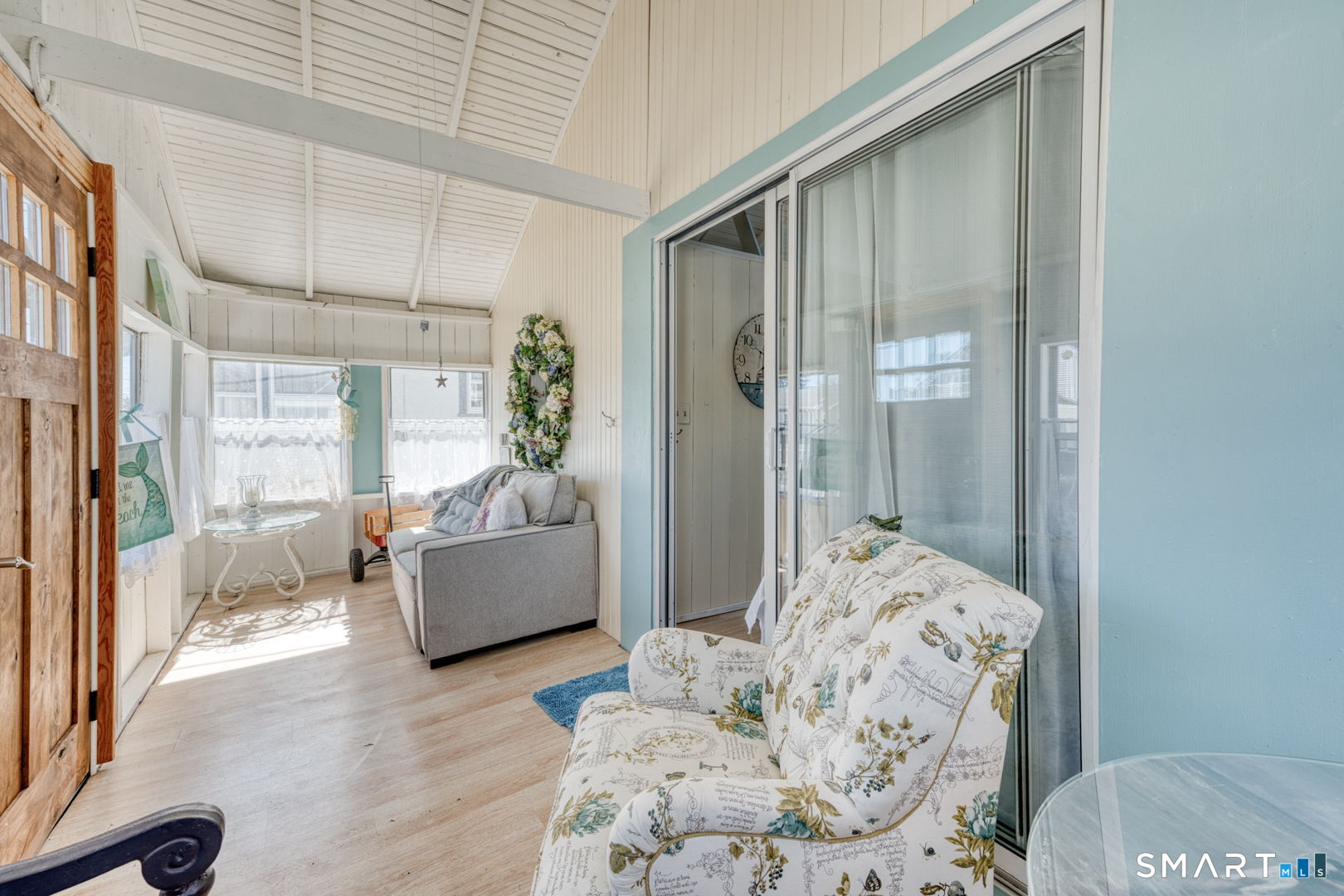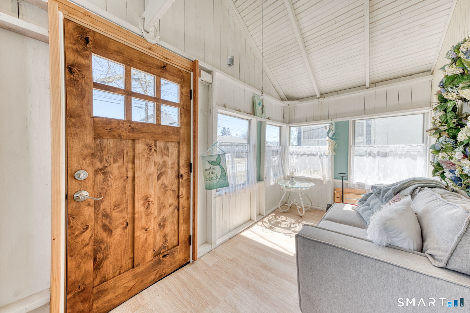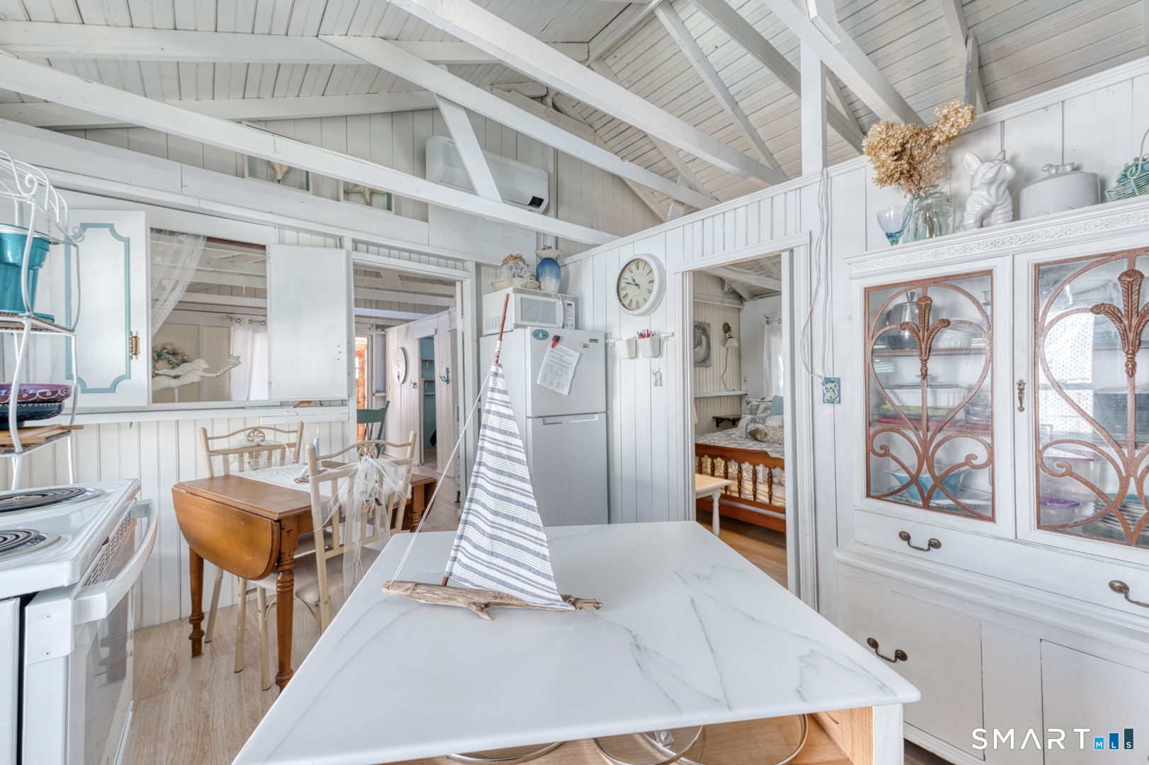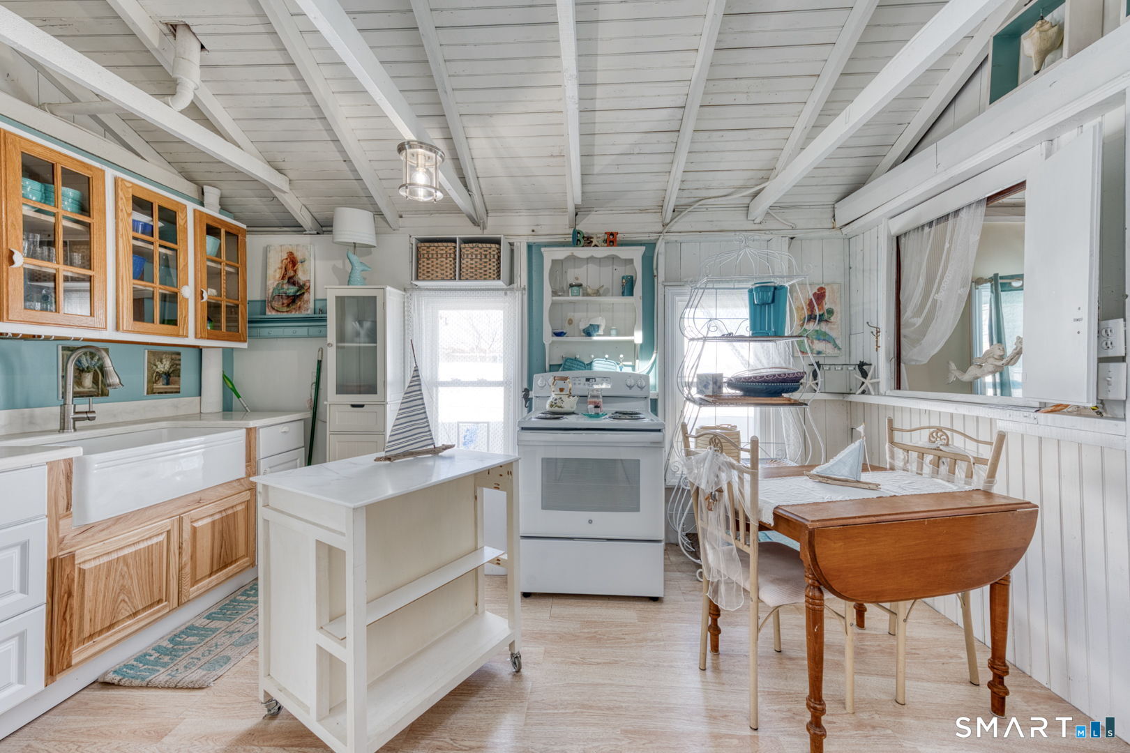 Charming and beautifully updated 4 bedroom cottage in desireable Saybrook Manor beach community. This home offers the perfect blend of character and modern improvements with vaulted ceilings and exposed beams. The completely remodeled kitchen features Corian countertops, a classic farmhouse sink, skylight for natural light and matching rolling kitchen cart for added prep and storage space. The renovated bathroom includes a luxurious rainfall shower head for a spa-like feel. The bright dining room is enhanced by a large new slider that opens to a spacious stone patio-ideal for indoor/outdoor living. The Living room has a skylight offering warmth and brightness for your gatherings. Enjoy summer evenings around the fire pit or rinse off in the outdoor shower with both hot and cold water after a day at the beach and enjoy dining under the pergula watching the sunset. Additional updates include new windows, new plumbing, and updated electrical, offering peace of mind for years to come. A perfect coastal-style retreat with thoughtful upgrades inside and out.
