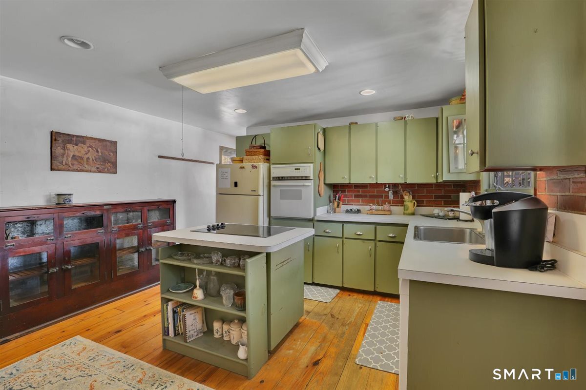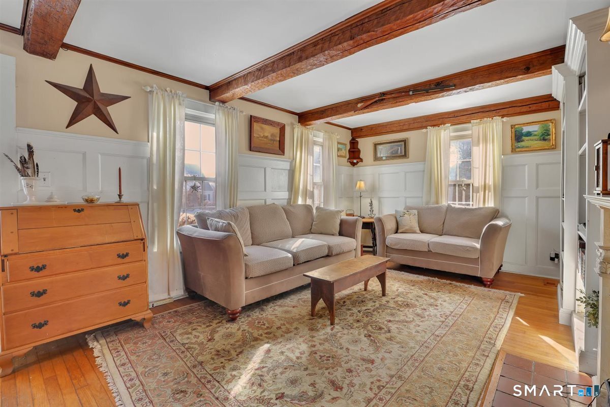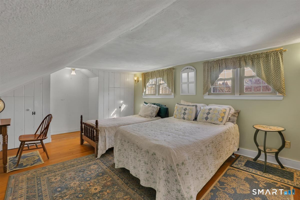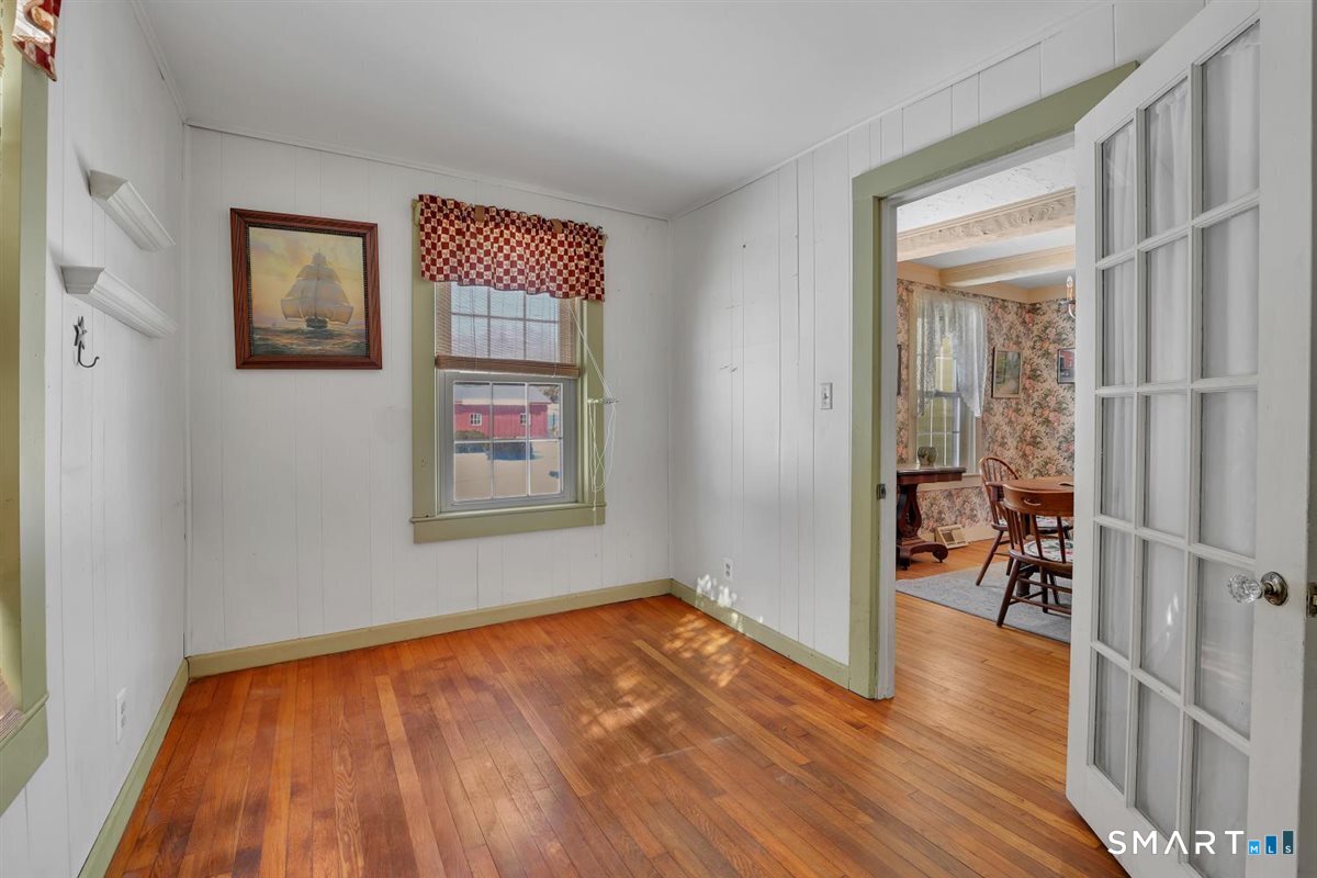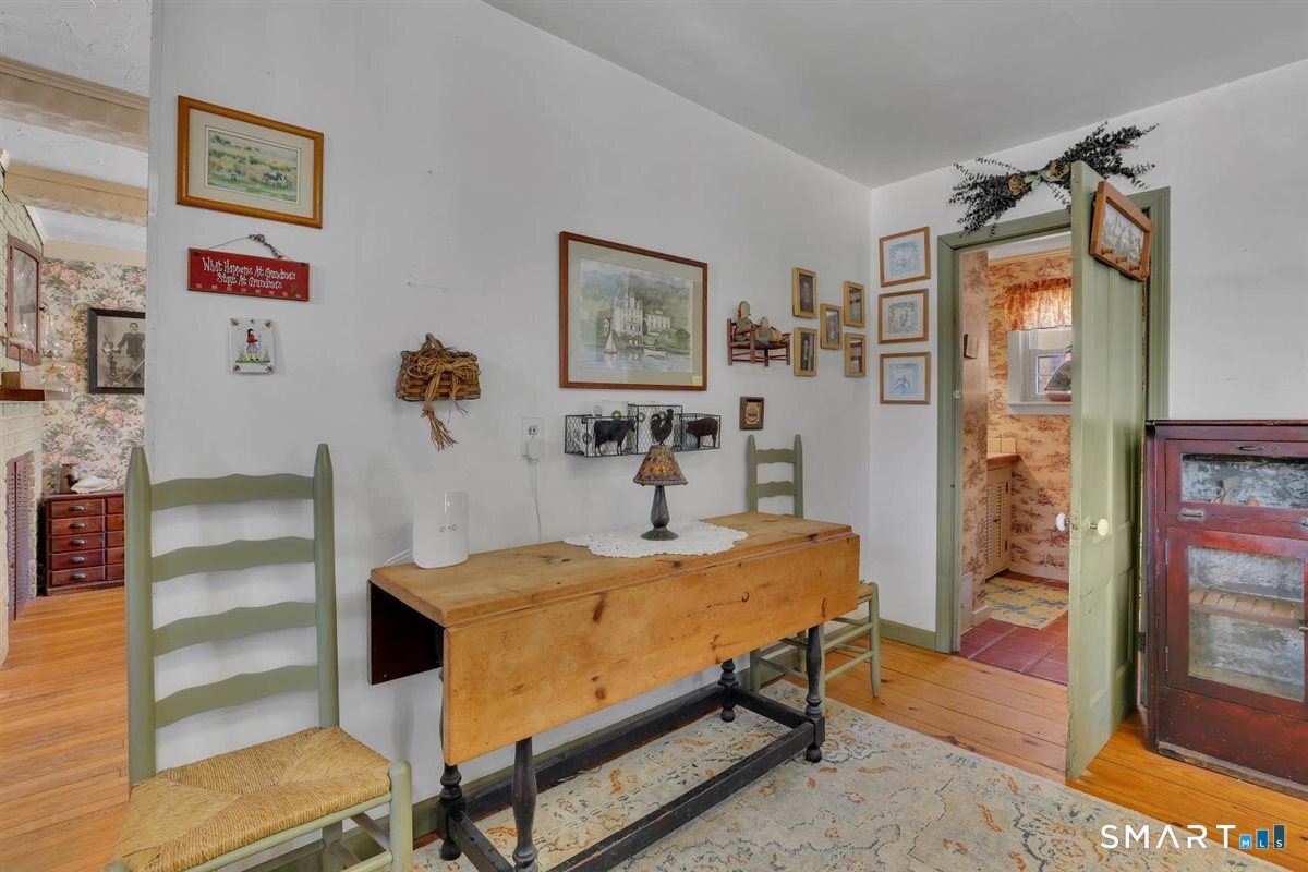 Finally! A house with character! Imagine yourself rocking out on the front porch of this charming antique Federal Colonial with a cup of coffee in the morning. This home has been lovingly kept in the same family for almost 50years. Once part of a farm, it still boasts 1.12 level acres, and a barn in the back of the property measuring 30x30. The first floor has a country kitchen with an island and a laundry room right off of it, as well as half a bath. There is a formal dining room with a faux fireplace and a built-in cabinet. Off of that is a small room that could be used as a bedroom, office, or perfect for a hobbyist. The living room holds much charm with beams and a second faux fireplace. Along with built-in bookcases, and English paneling. Both upper and lower floors have hardwood flooring. Upstairs, you will find a large landing with three additional bedrooms off of it, as well as a full bathroom. There is a third floor walk-up attic, which has been finished and ready for additional living space, sized at 25x12. Currently not heated. Outside, you will find many perennial flowers and flowering shrubs, a fenced in garden as well as a large open barn. In addition, this property features a Well Pump that was replaced in 2025 and a new hot water tank 6-months ago.