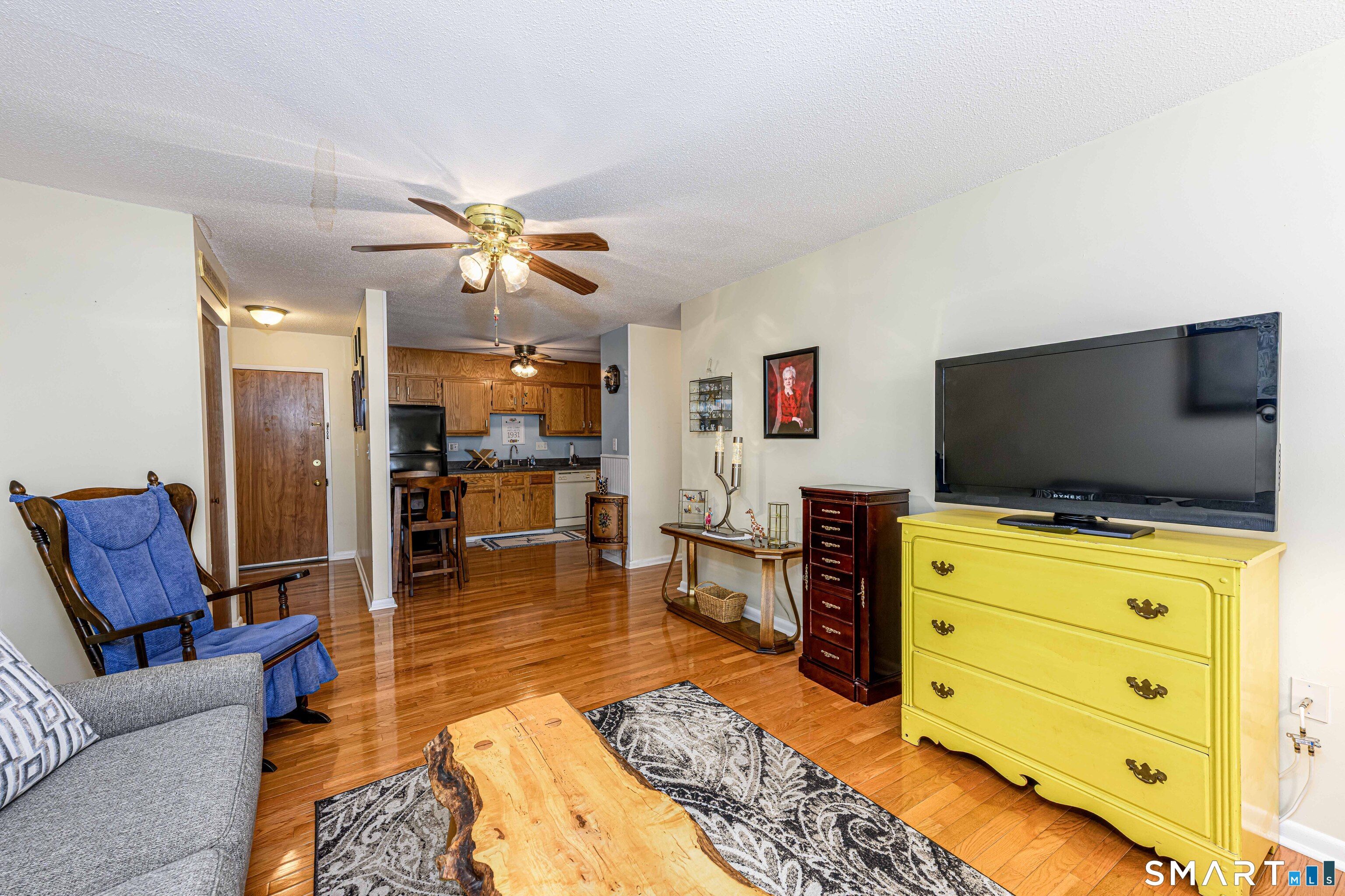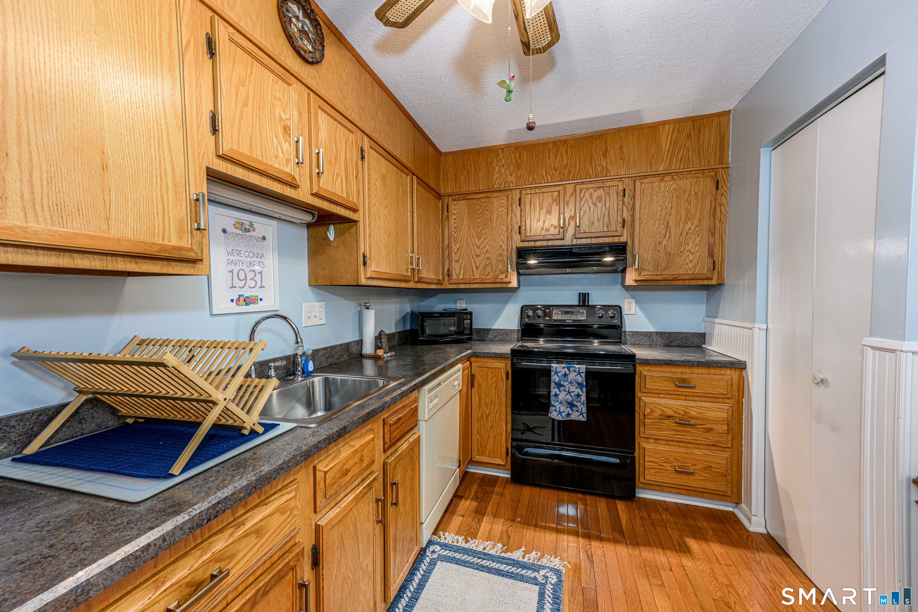 Lovely 1 bedroom condo, well kept, in a 55+ community, many activities, 2nd floor, community room, laundry on first floor, gleaming hardwood floors 2011, updated appliances, refrig approx 5 years old, hot water tank 2020, new vanity and mirror in bathroom, new furnace and A/C in 2020, new ceiling fans in 2011, many closets, patio sitting area in the back. Assessment for new roof fully paid for, storage unit in basement, Common area recently updated.