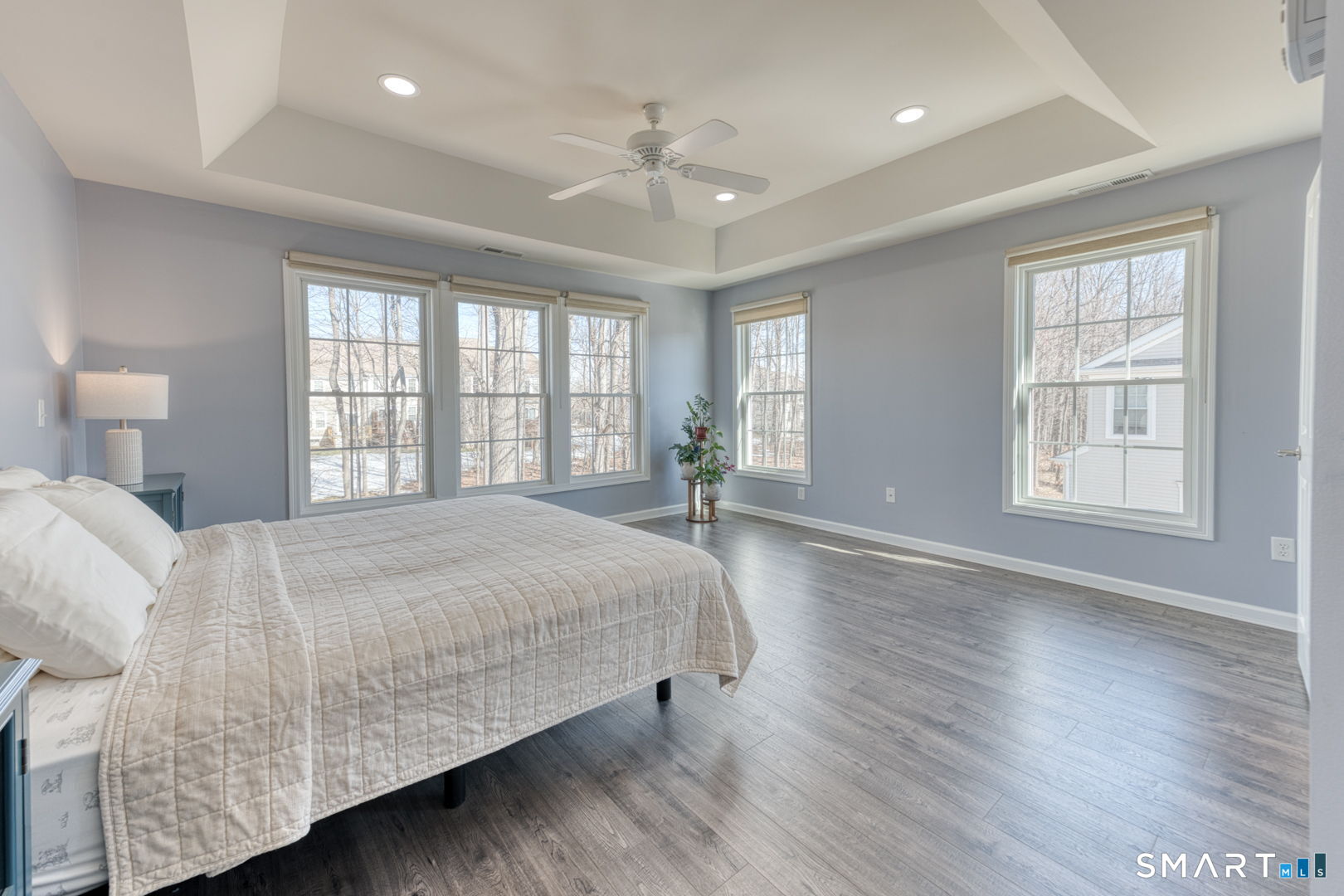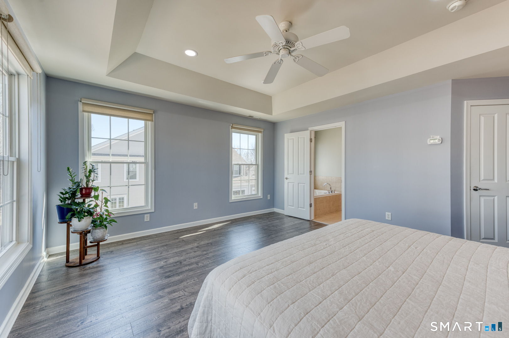 Experience refined living in this immaculate end-unit townhouse offering 3 bedrooms, 3 bathrooms, and exceptional craftsmanship throughout. The main level welcomes you with an open-concept layout, ideal for both everyday living and entertaining. The eat-in kitchen features granite countertops, solid hardwood cabinetry, stainless steel appliances, and flows seamlessly into the spacious living room with soaring ceilings and beautiful natural light. Hardwood floors and detailed millwork add warmth and elegance throughout the home. Upstairs, the expansive primary suite offers tray ceilings, a walk-in closet, and a luxurious en-suite bath with a jetted tub and dual-sink vanity. A separate home office provides the perfect space for remote work or study. All with new engineered hardwood floors. The partially finished lower level adds a generous family or recreation room with luxury vinyl. Outside, enjoy your private deck and oversized two-car garage. Natural gas heat, central air, low HOA, and pristine condition make this a truly turn-key home.
