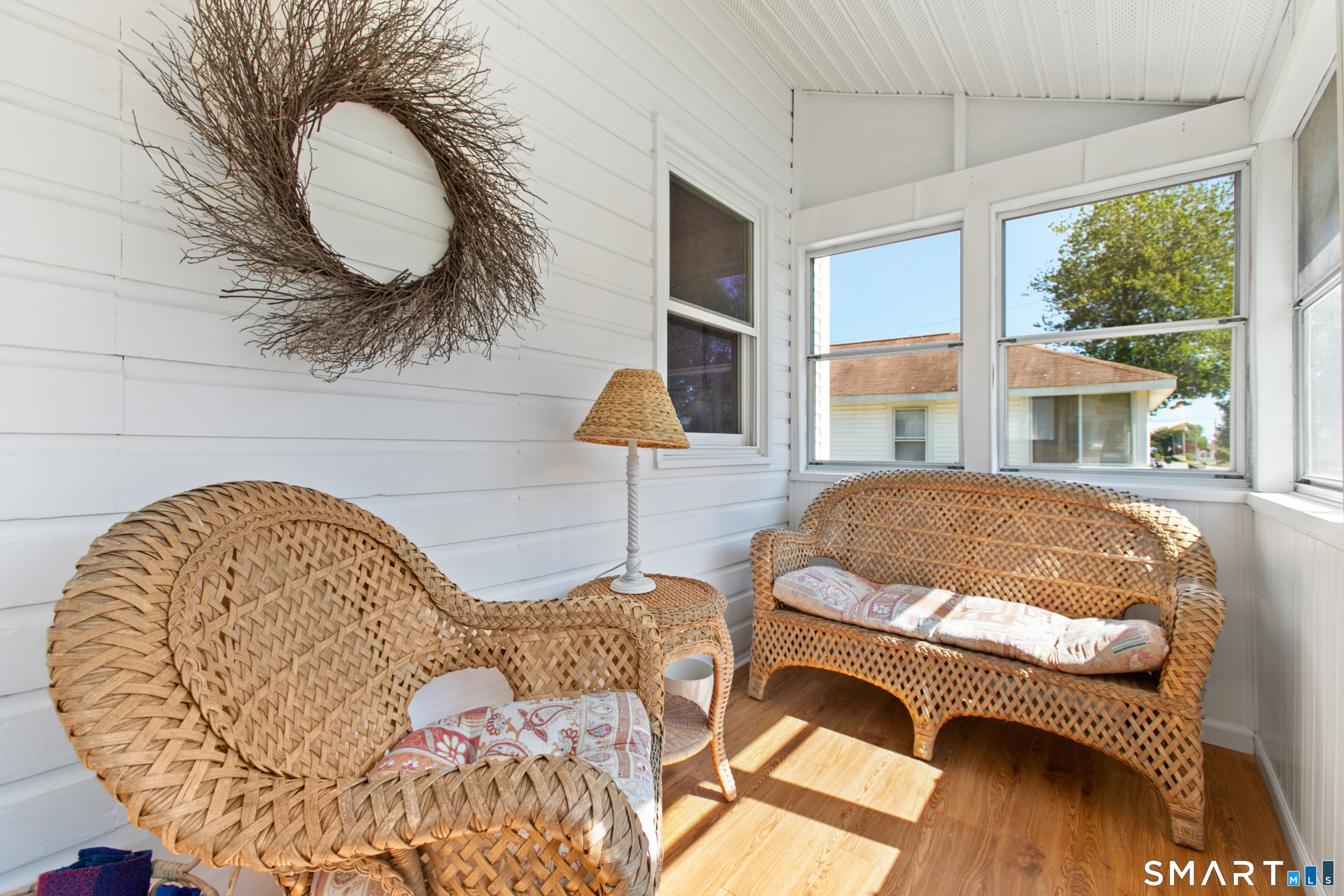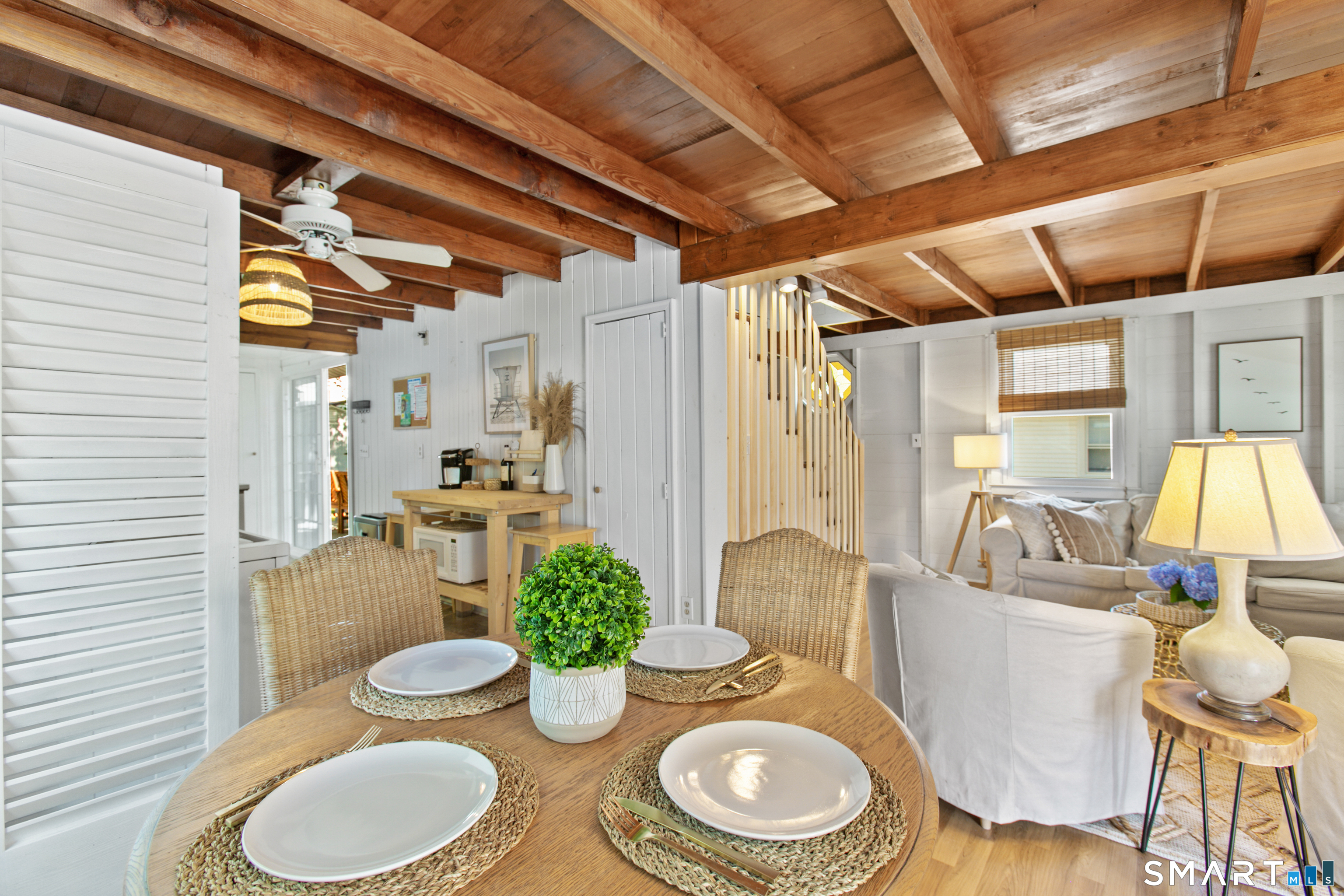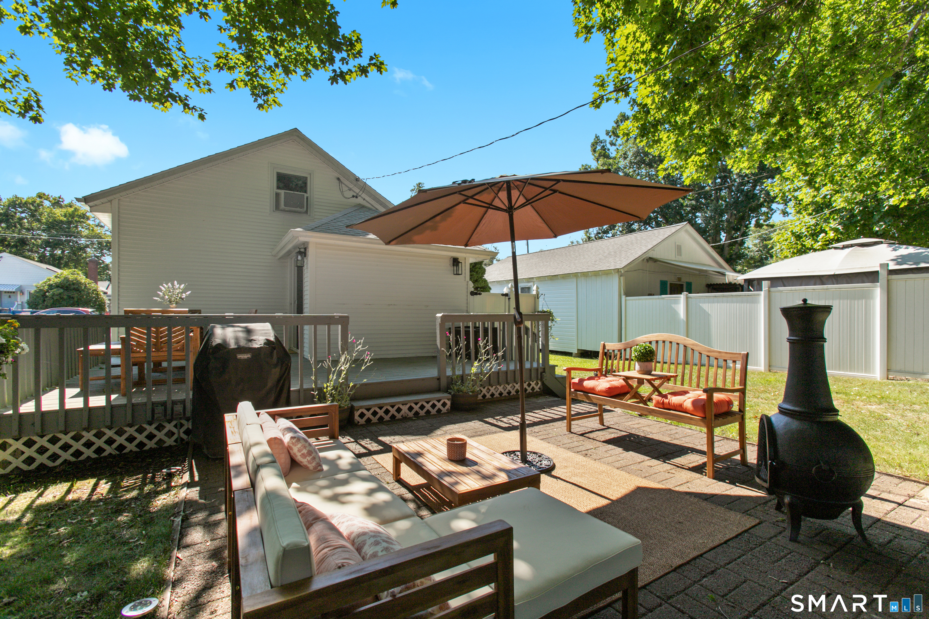 Charming, beautifully maintained seasonal beach cottage just about 800 steps from the shore. Tucked into a neighborhood of well-kept homes, this inviting coastal retreat is the perfect place to escape for the summer-spend your days beach walking, swimming, kayaking, shell collecting, or simply relaxing by the water. A bright enclosed sun porch welcomes you in and offers the perfect spot for morning coffee or unwinding after a day at the beach. Inside, the cozy living room flows into an eat-in kitchen, with a main-level bedroom and full bath. The finished walk-up attic has been used by current and previous owners to accommodate additional overnight guests. Enjoy summer evenings grilling on the spacious deck and patio overlooking the backyard and garden area, and rinse off in the convenient outdoor hot shower after a day in the sand. Recent updates include a newer architectural shingle roof, gutters and downspouts, energy-efficient Harvey windows, and a newer entry door. Two sheds provide excellent storage for beach gear, and parking on both sides of the property allows space for multiple vehicles. Flood insurance is NOT required. Conveniently located near shoreline dining, parks, and attractions, including Mohegan Sun and the Katharine Hepburn Cultural Arts Center. An ideal summer getaway where you can unplug, relax, and make lasting shoreline memories year after year.