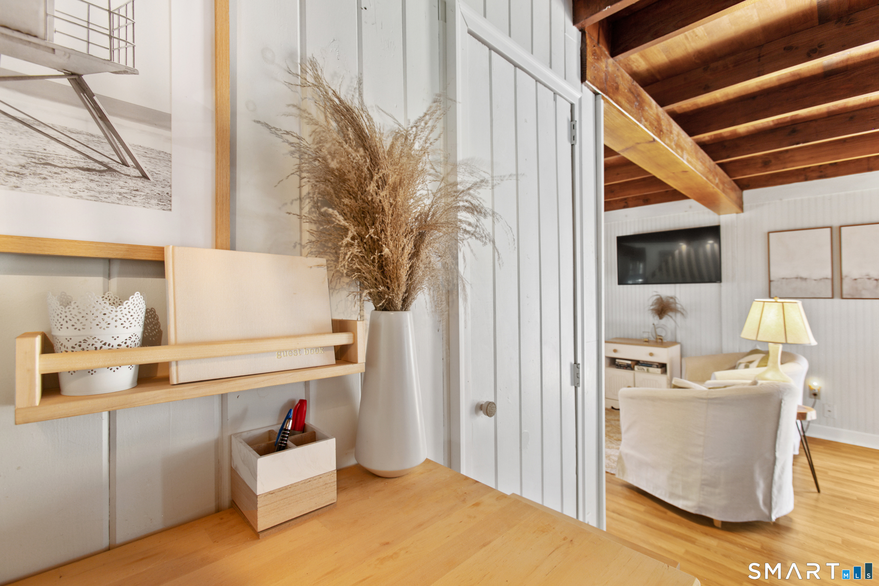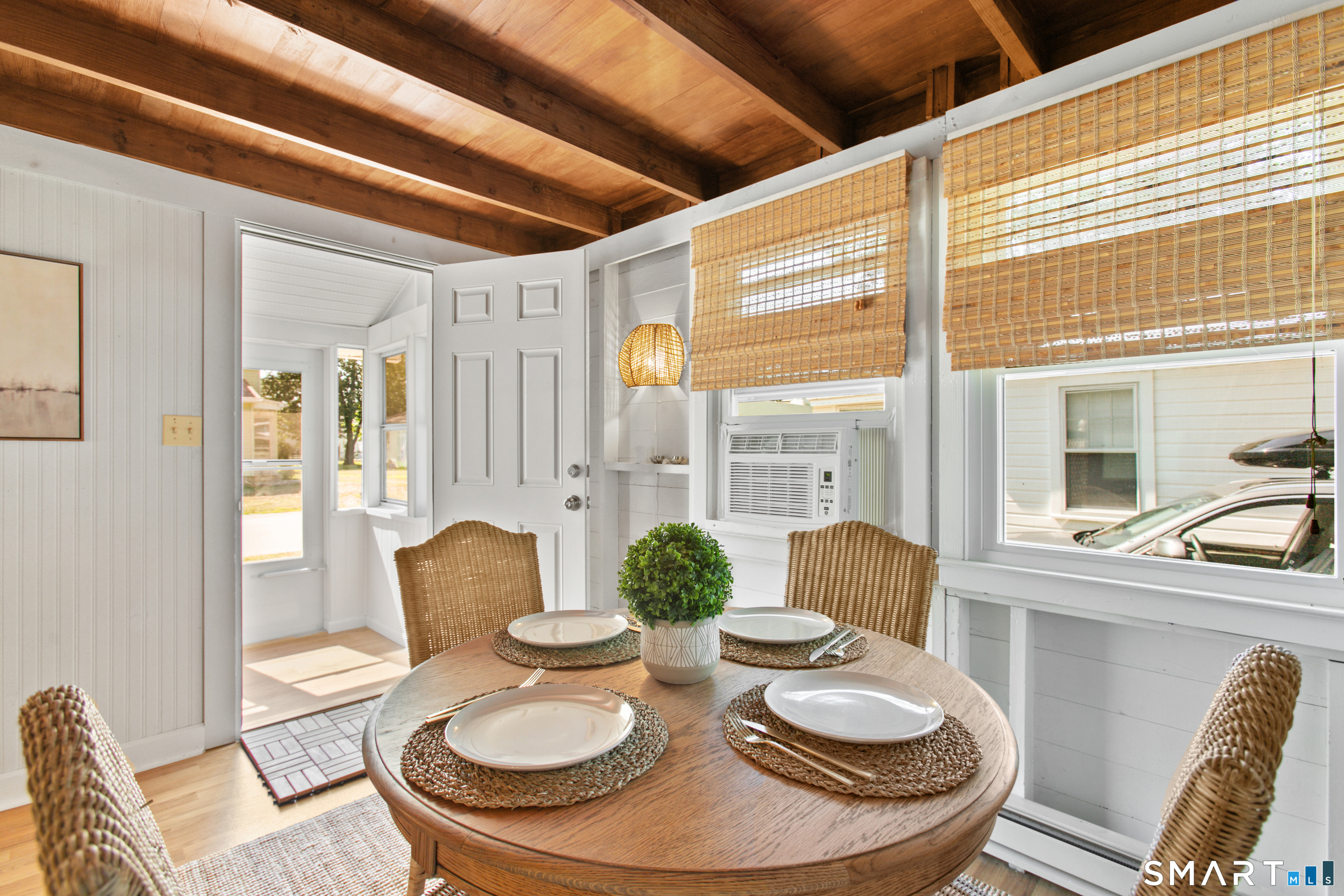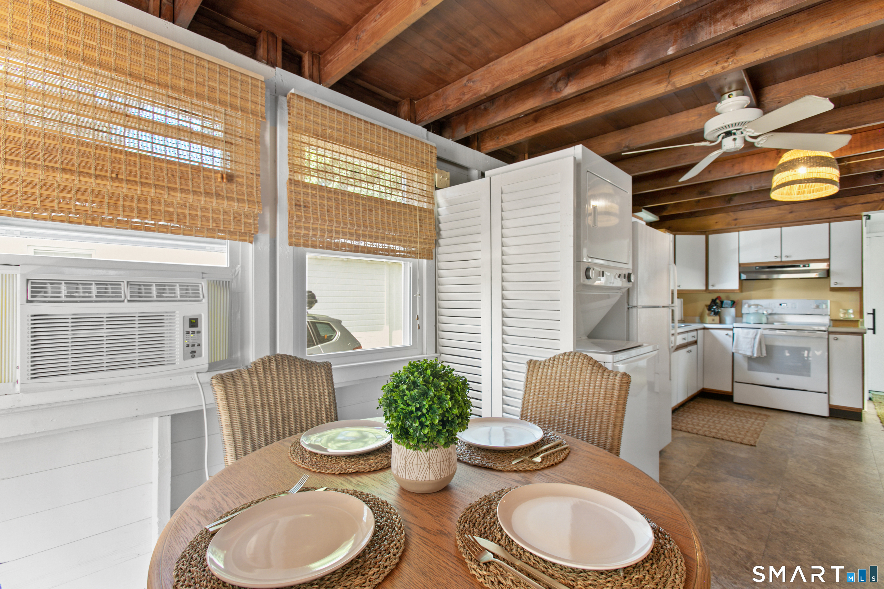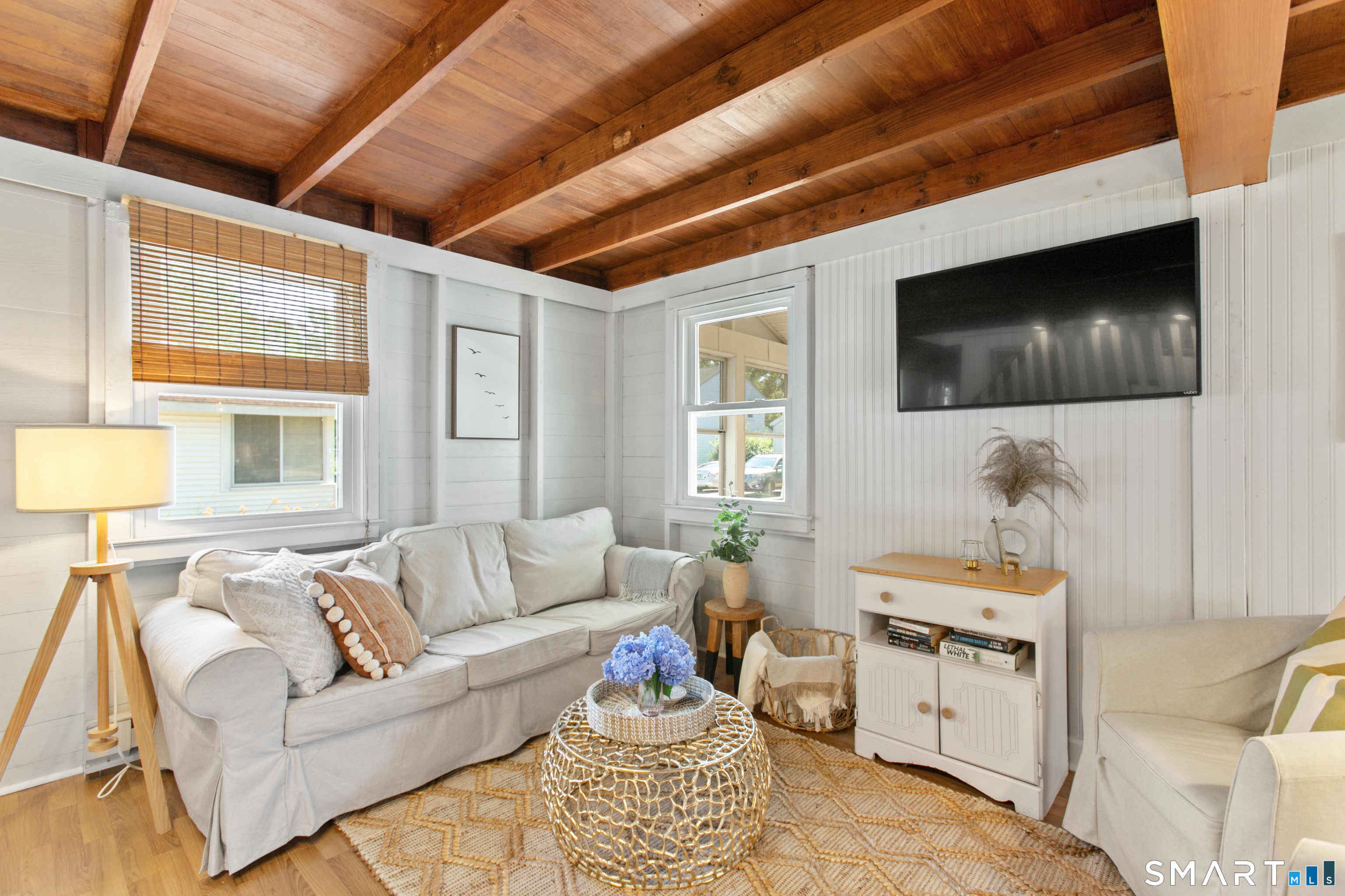 Charming, beautifully maintained seasonal beach cottage just about 800 steps from the shore. Tucked into a neighborhood of well-kept homes, this inviting coastal retreat is the perfect place to escape for the summer-spend your days beach walking, swimming, kayaking, shell collecting, or simply relaxing by the water. A bright enclosed sun porch welcomes you in and offers the perfect spot for morning coffee or unwinding after a day at the beach. Inside, the cozy living room flows into an eat-in kitchen, with a main-level bedroom and full bath. The finished walk-up attic has been used by current and previous owners to accommodate additional overnight guests. Enjoy summer evenings grilling on the spacious deck and patio overlooking the backyard and garden area, and rinse off in the convenient outdoor hot shower after a day in the sand. Recent updates include a newer architectural shingle roof, gutters and downspouts, energy-efficient Harvey windows, and a newer entry door. Two sheds provide excellent storage for beach gear, and parking on both sides of the property allows space for multiple vehicles. Flood insurance is NOT required. Conveniently located near shoreline dining, parks, and attractions, including Mohegan Sun and the Katharine Hepburn Cultural Arts Center. An ideal summer getaway where you can unplug, relax, and make lasting shoreline memories year after year.