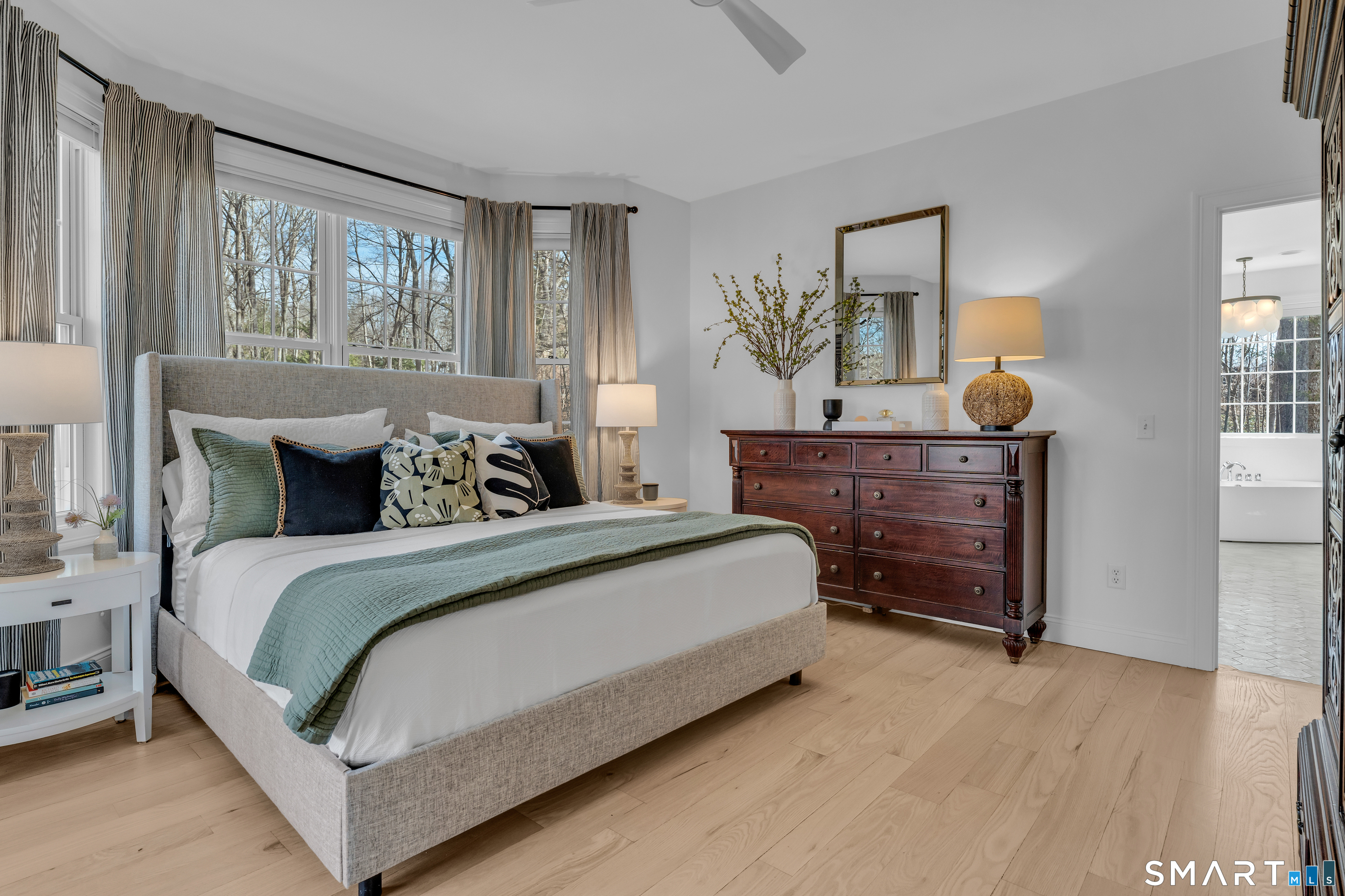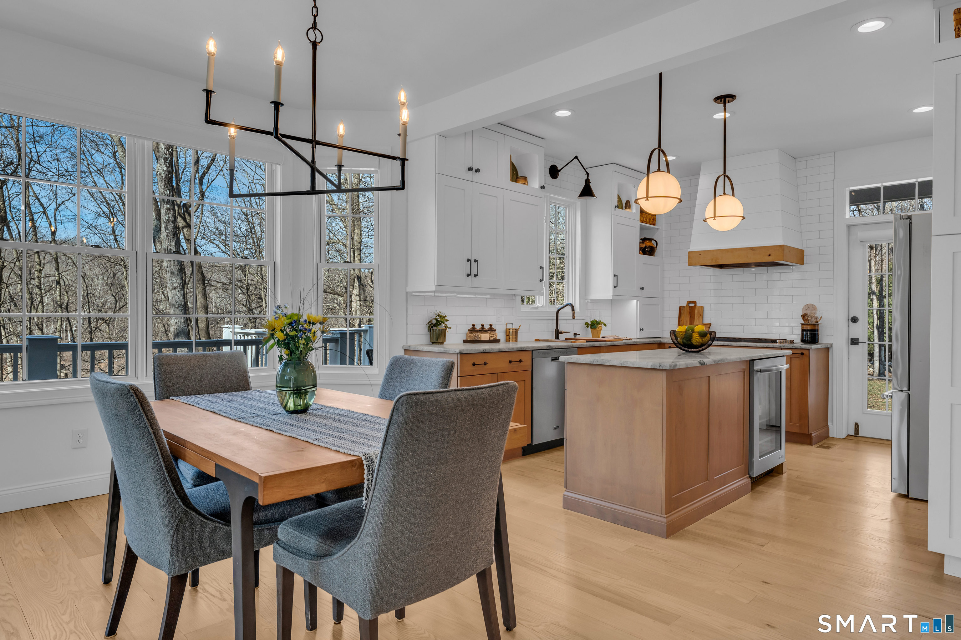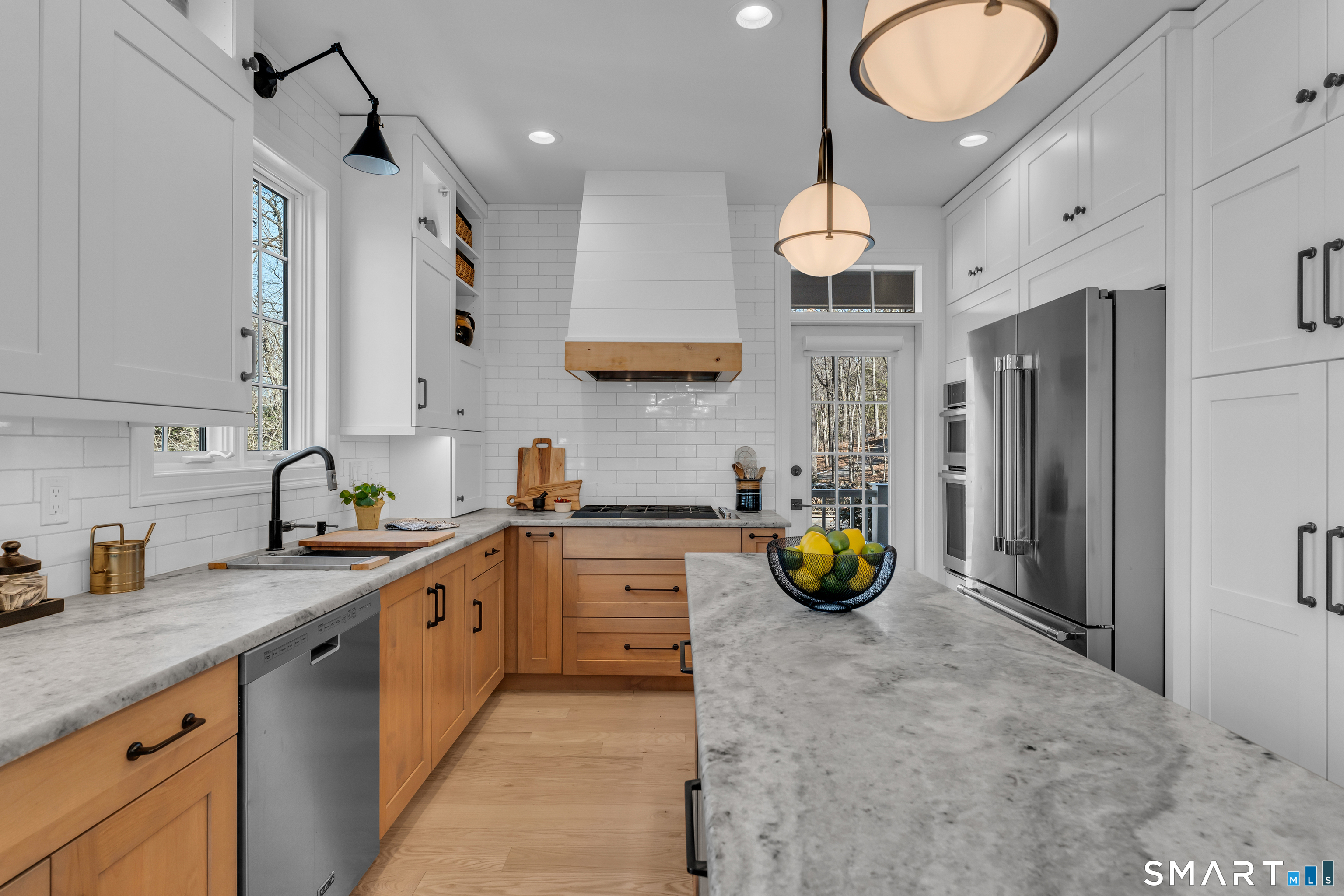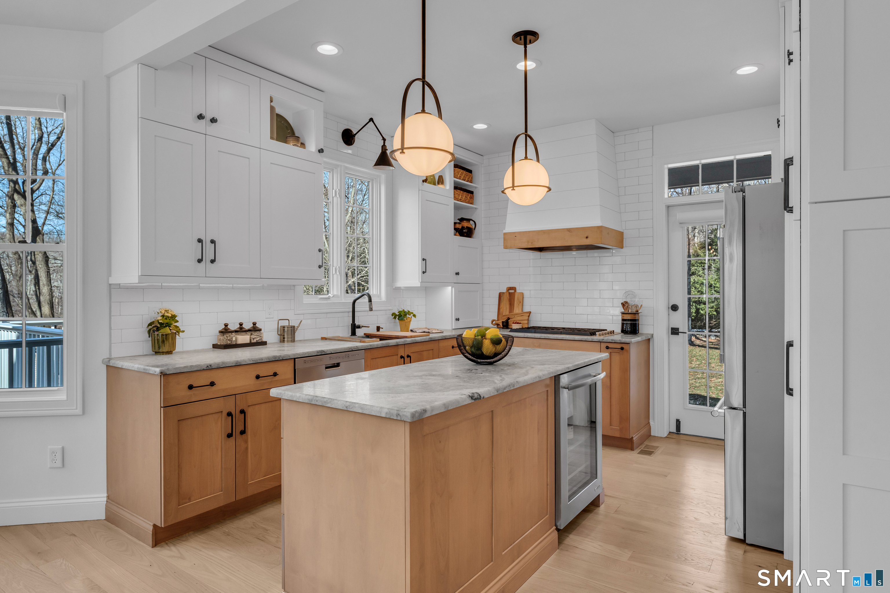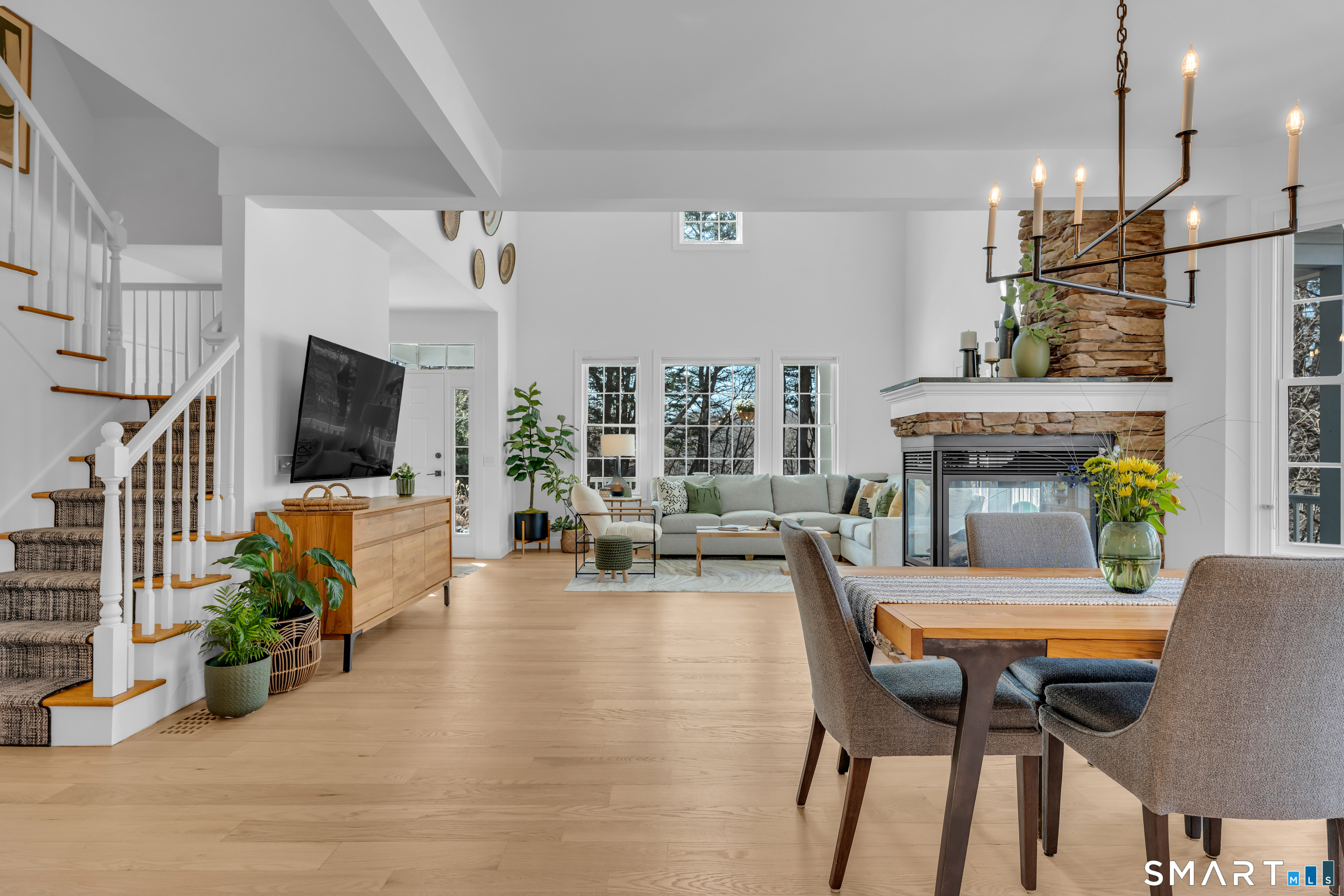 Prepare to fall in love with this exquisite home, fully remodeled in 2021-2024 with no expense spared. Every inch reflects exceptional craftsmanship, from high-end materials and custom cabinetry to designer tile, premium lighting, and brand-new mechanicals, including a new furnace and AC condenser. Step inside to a breathtaking open-concept living space anchored by a dramatic 3-sided stone fireplace. The thoughtfully designed kitchen-with a chef's sink, integrated accessories, double oven, and 6-burner gas stove-makes cooking a joy. The first-floor primary suite offers two closets, French doors to the wraparound deck, and a spa-like bath with a walk-in shower and freestanding slipper tub. Upstairs are two generously sized bedrooms, one with charming built-ins and window seats, plus an open loft-style room with shelving currently used as a home office overlooking the family room. The finished lower level is ideal for gatherings, featuring a kitchenette with refrigerator, sink, cabinets, and a bar area that flows seamlessly to the outdoor stone patio. Enjoy the fire pit, multiple seating areas, and views of the professionally landscaped grounds. Mature landscaping, thoughtful hardscaping, and your own private pond create a serene retreat-fish in summer, skate in winter. Set on over 5 acres in the quiet, nature-rich town of Killingworth, this home offers true Connecticut living at its best. Schedule your private showing today.
