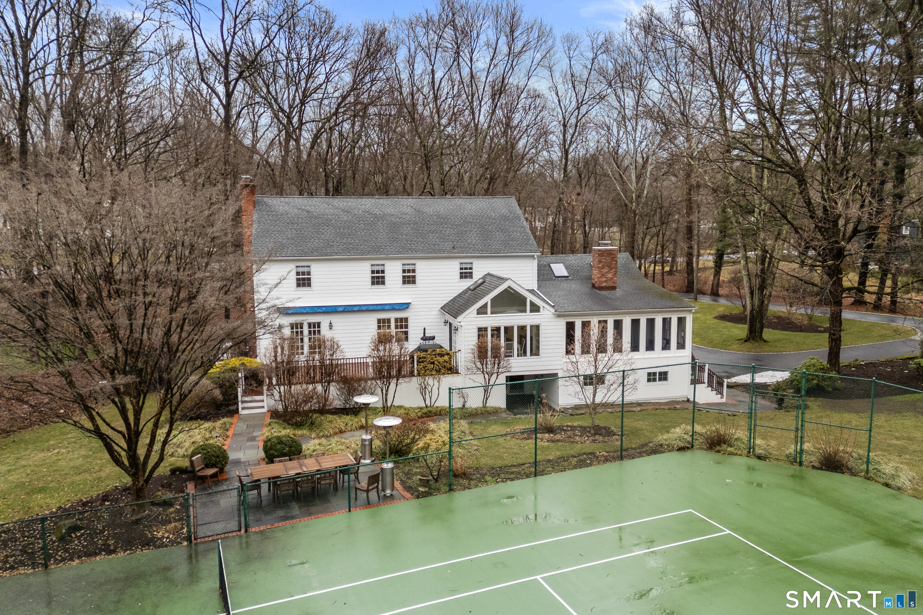 Nestled in a country setting with 2.04 acres of flat, private, beautiful property on one of Westport's most idyllic and picturesque walking streets is a warm and light filled Colonial, in a serene and wooded neighborhood setting. Inside and out, this home has been beautifully updated and maintained. The interior has all the right rooms in all the right places. Rooms are spacious. Main Level: Foyer, Formal Liv/Din Rms, Family Rm w/vaulted ceiling, Kitchen, Breakfast Room, Office and access to Screened-in Porch and large, outdoor Deck. The Lower Level has another Family Rm, Office/Storage Rm, Full Bath, Sauna, Mudroom and tons of storage. Outdoors, you will find a beautifully set tennis/pickleball court with basketball hoop. The peacefulness of this property makes the perfect setting for parties and everyday enjoyment. All of this only 1.3 miles to Coleytown Elem/Middle Schools, less than 3 miles to downtown, and less than 5 miles to the Westport Train station!