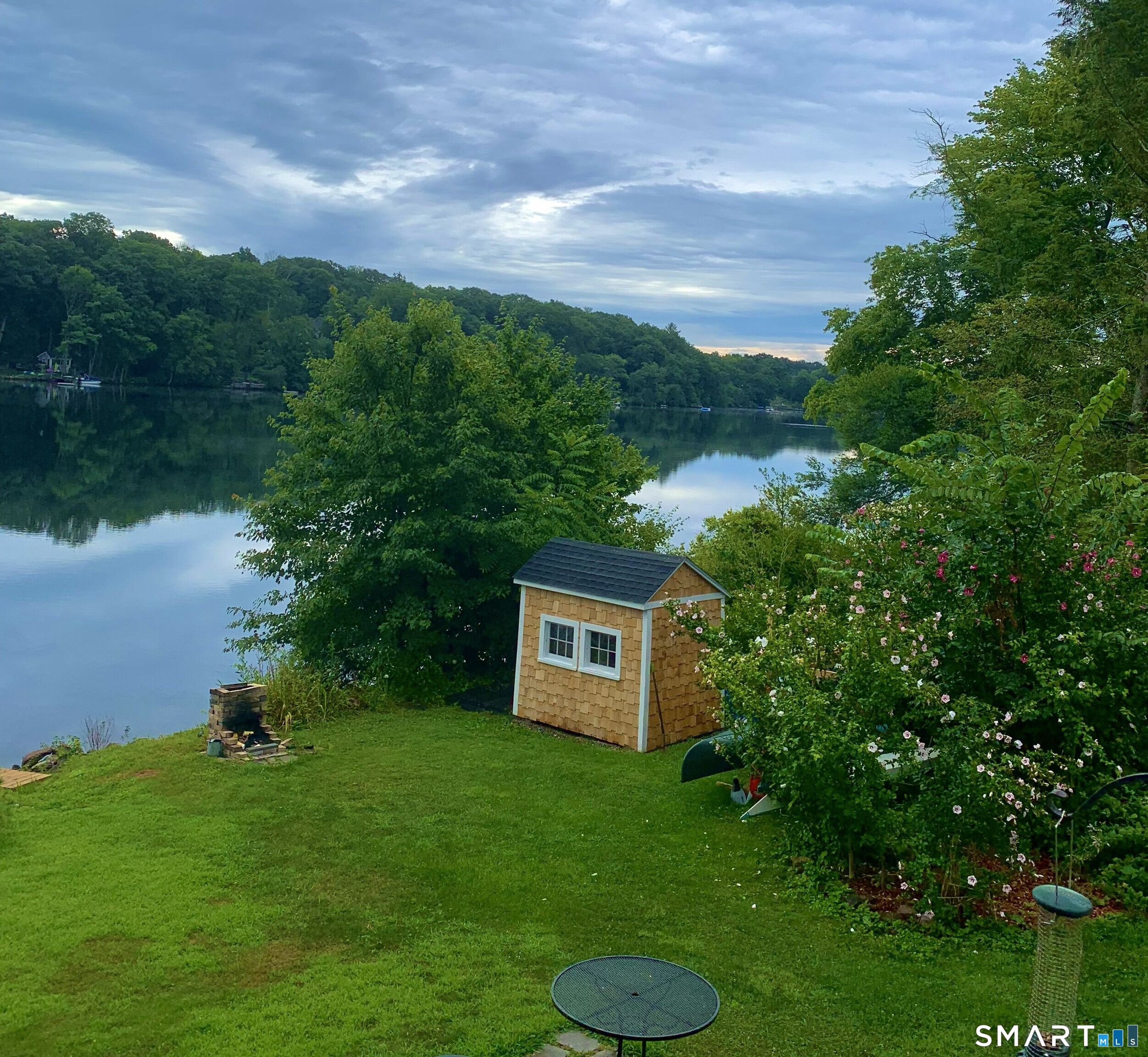 Set along 82 feet of direct waterfront on Lake Terramuggus, 23 Coleman Lane offers a thoughtfully renovated lakeside retreat designed to capture the natural beauty of the water and surrounding landscape. One of the original lake retreats from the 1920s, rebuilt and expanded in 1968, the home was extensively renovated in 2024 with a focus on light, views, and connection to the lake. The residence was reimagined by a four-time Emmy Award-winning composer, bringing a creative perspective to the design while maintaining the relaxed character of a classic Connecticut lake house. Recent improvements include cedar siding, a new roof, updated major appliances, new furnace, new windows, and a newly constructed lakeside patio. Outdoor features highlight the waterfront setting and include a private dock, gazebo, landscaped stone pathways, and a separate lakeside shed with a wood-burning stove-an inviting space positioned directly along the water for gathering or enjoying the lake in every season. Current photos provide an early look at the property, including lake views, waterfront access, interior living spaces, and the lakeside shed. Professional photography is scheduled for March 26 and will include additional interior images and a floor plan. This property offers direct access to Lake Terramuggus with a setting designed to highlight the surrounding water and natural landscape.