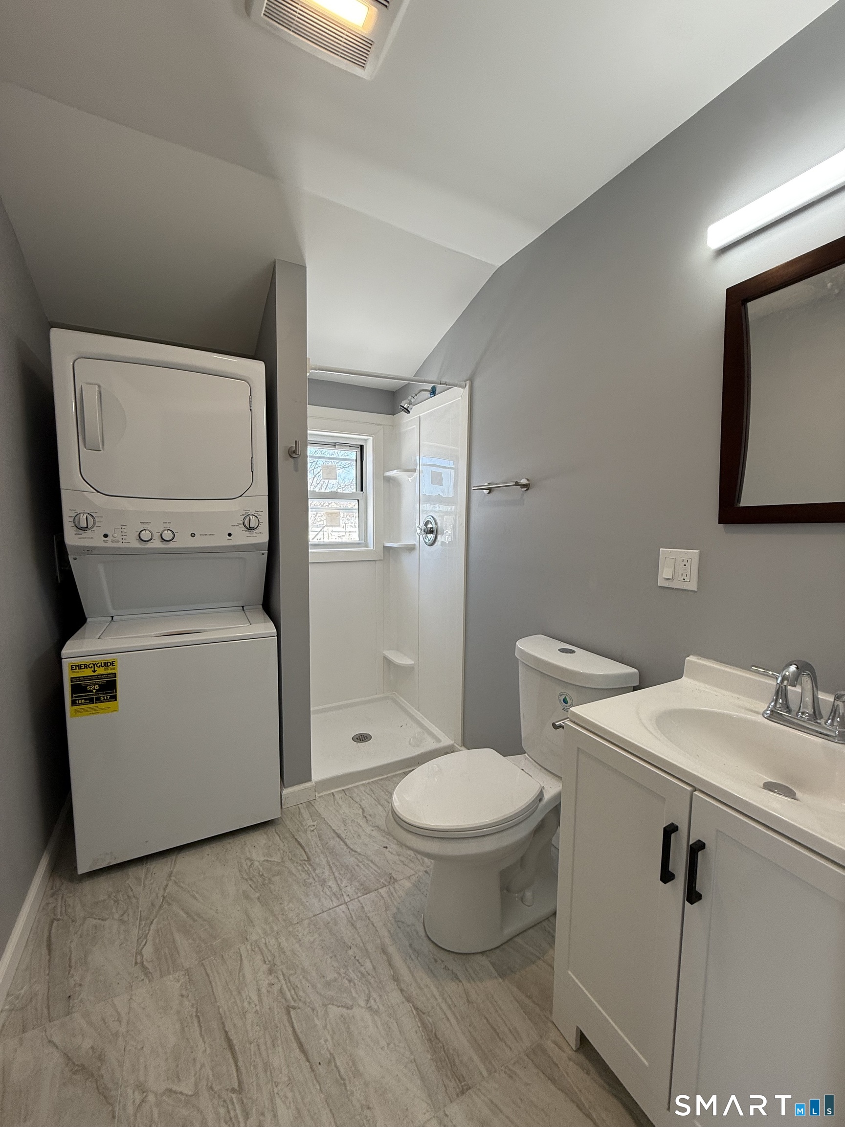 Be the first occupants of this newly renovated building with new kitchen, bathroom, walls, floors, almost everything redone. Third floor apartment with 2 bedrooms, 1 full bathrooms, living room, and large multi-windowed kitchen. The kitchen is furnished with new stainless steel GE appliances - refrigerator, gas range, dishwasher, hood. GE branded washer and dryer. Central A/C and heating in the building. Rear door access leads to a balcony space to enjoy your morning coffee. Off street parking available, inquire about garage space, if needed. Newly renovated building. Rear balcony or patio space to enjoy some private outdoor time. Off street parking and garage available for rent. Close access to major highway for easy commute access. Less than 5 minute drive away from Stratford train station.