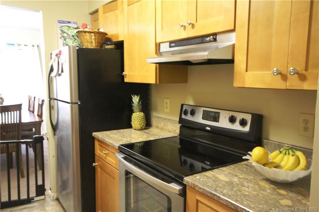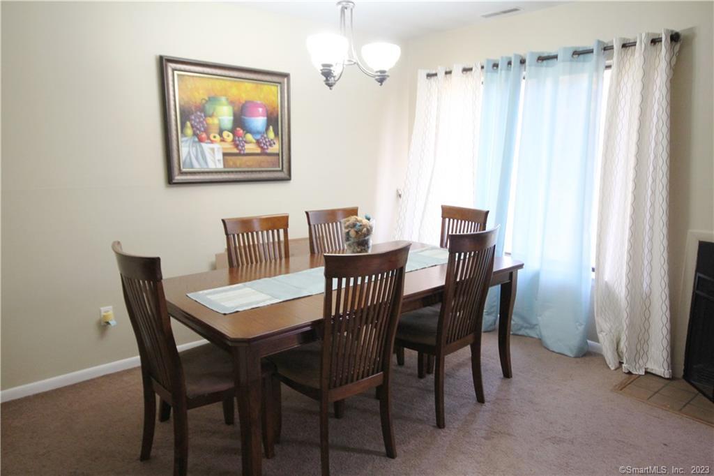 This beautifully maintained townhouse offers a modern kitchen featuring granite countertops, stainless steel appliances, abundant cabinetry, and a generous pantry. The open-concept living room boasts a wood-burning fireplace and sliding glass doors leading to a private deck with serene wooded views and a tranquil brook. A formal dining room provides an elegant space for entertaining. Upstairs, enjoy the convenience of a washer and dryer, along with updated bathrooms and spacious bedrooms. Reserved parking space #55 is ideally located directly across from the unit's secondary entrance. Prime location with easy access to I-84, shopping, restaurants, and local amenities. Absolutely No Pets, don't ask. Landlord requires 700+ Fico score & proof of gross earnings equal to 3x of monthly rent.