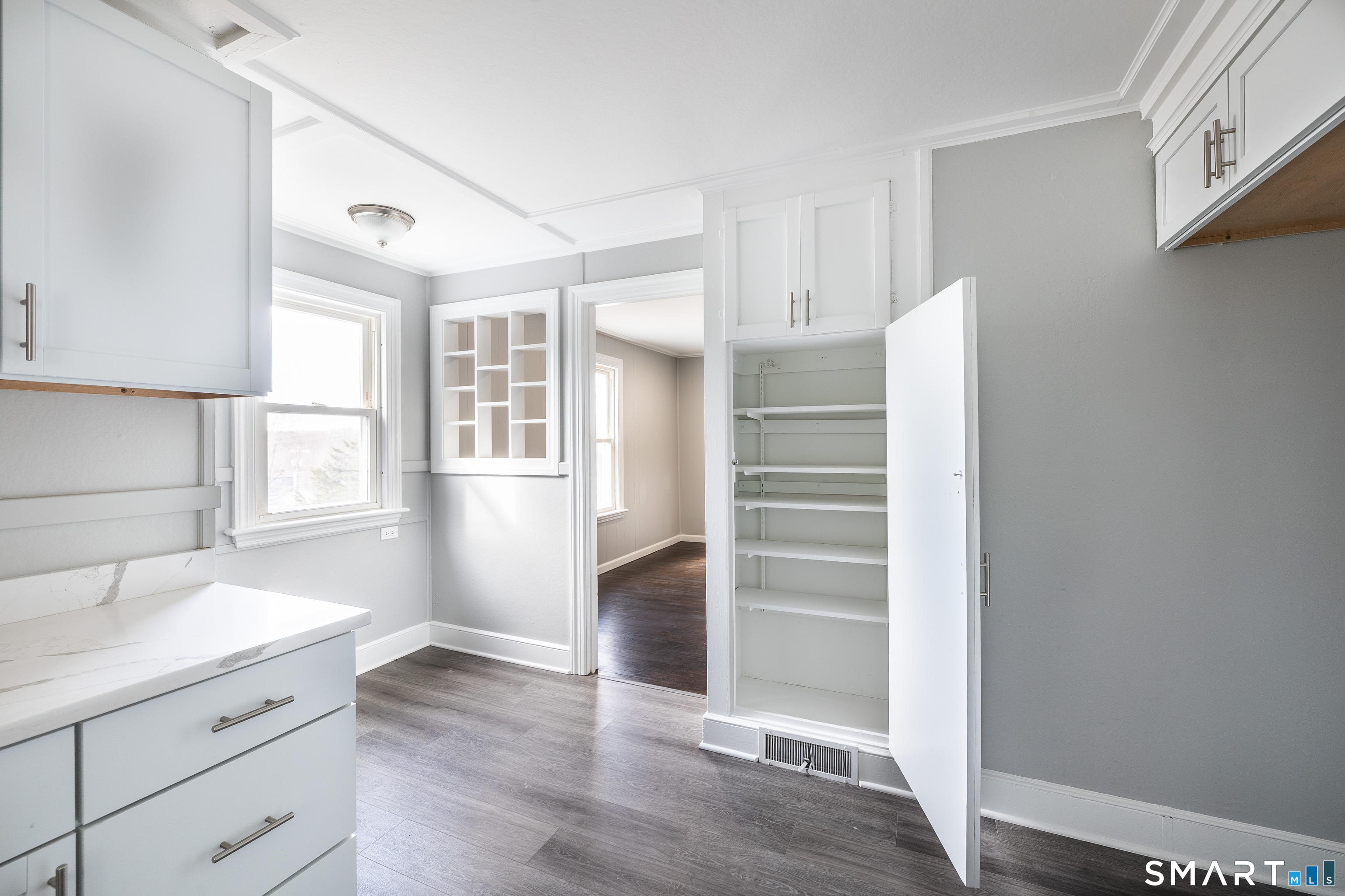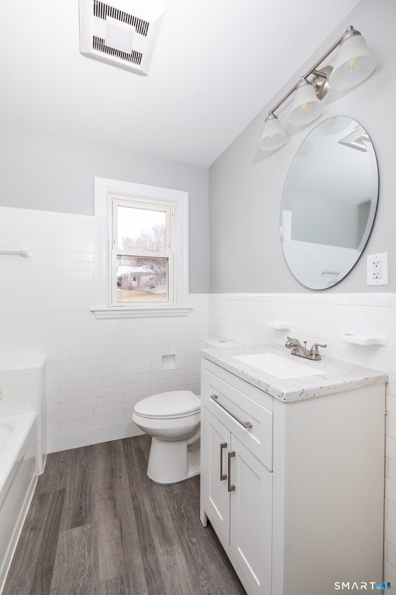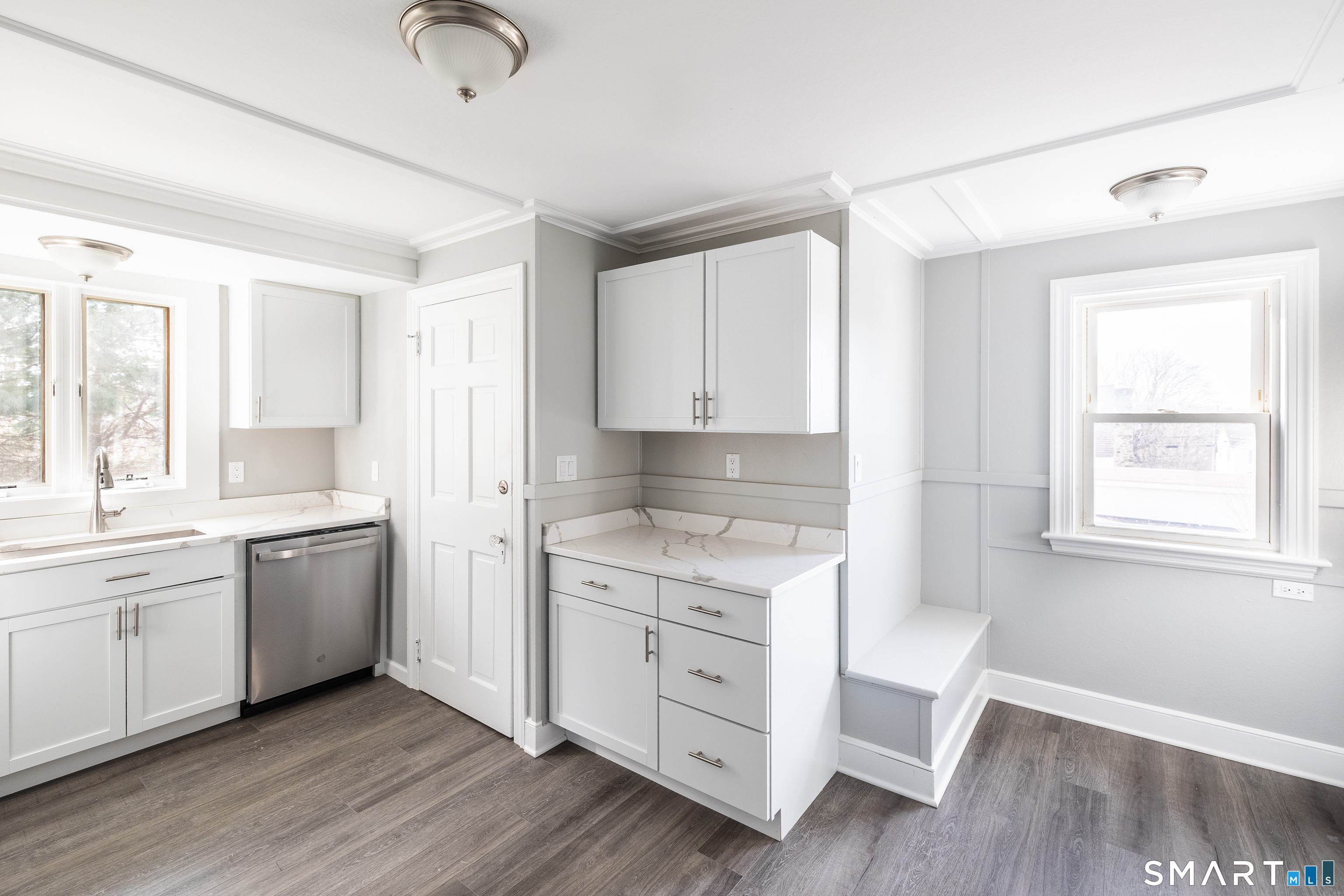 Charming and move-in ready home tucked away on a quiet street in Waterbury. This beautifully updated property features refinished hardwood floors, fresh neutral paint, and elegant trim and crown molding throughout. The renovated kitchen offers modern cabinetry, stone countertops, and stainless steel appliances, flowing seamlessly into a bright dining and living area with a classic fireplace. The updated bathroom features clean subway tile and contemporary fixtures. Additional highlights include a bright enclosed porch, attached garage, and spacious basement with plenty of storage. Conveniently located near parks, shopping, and major commuter routes, this home blends classic character with modern updates.