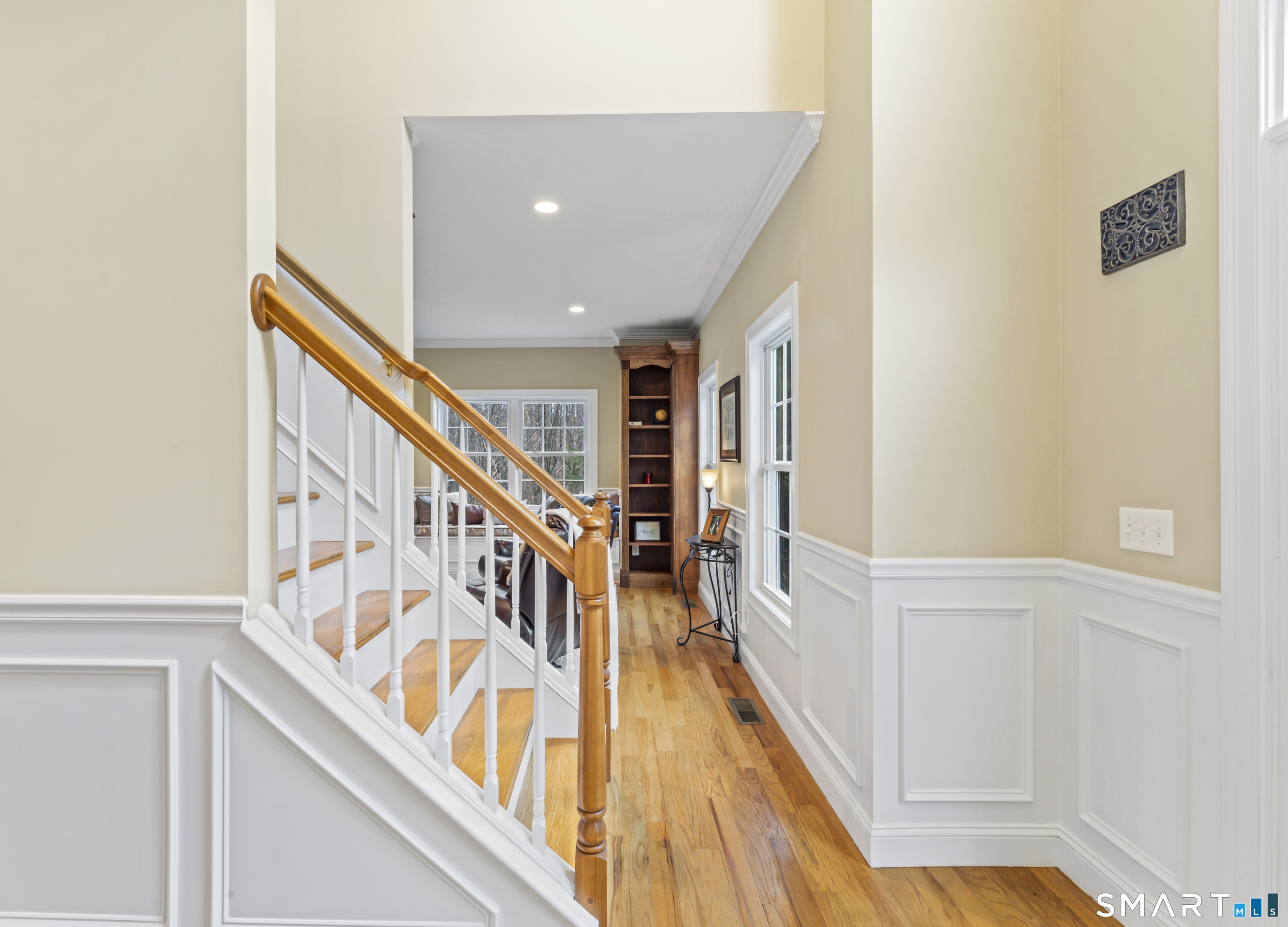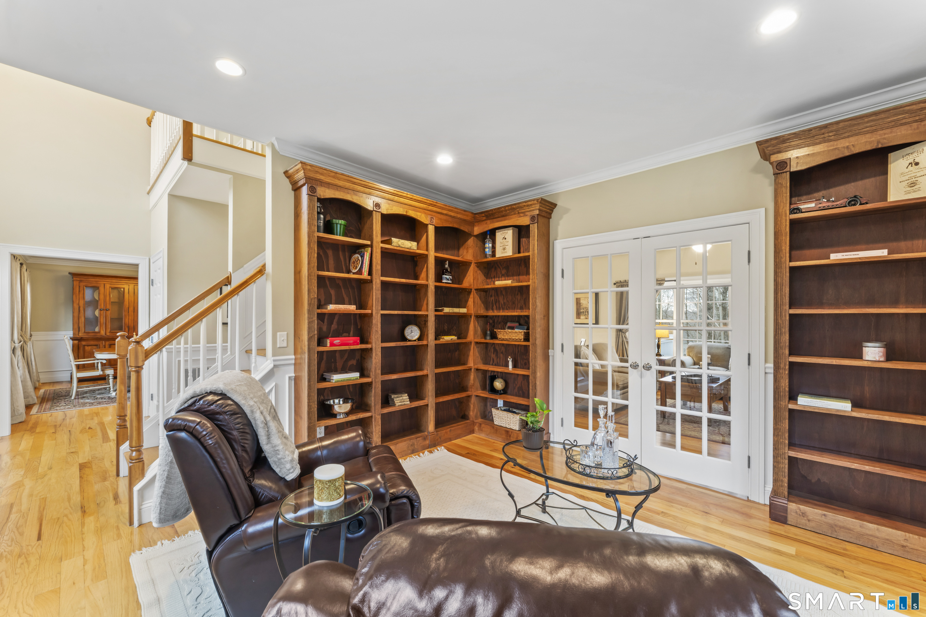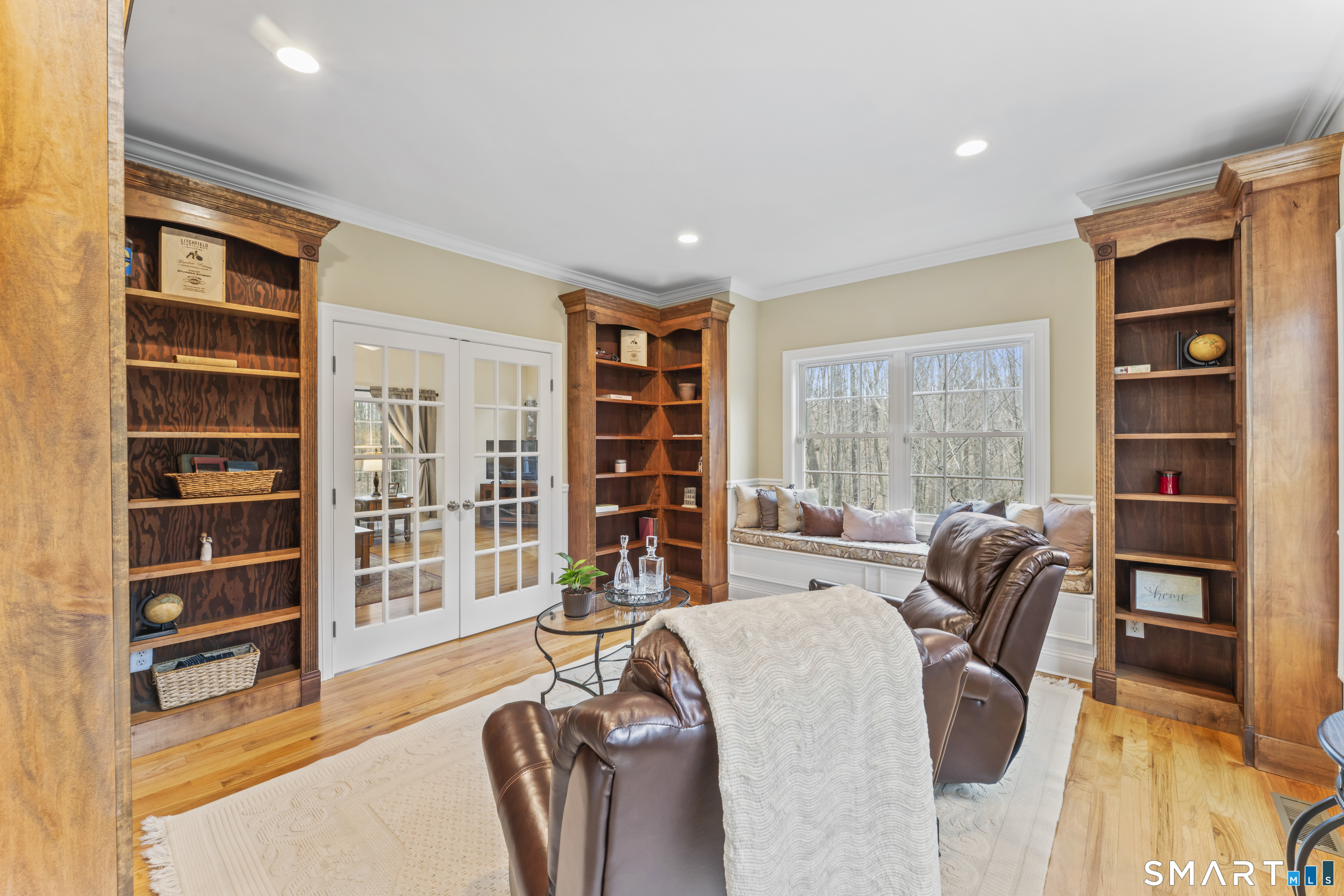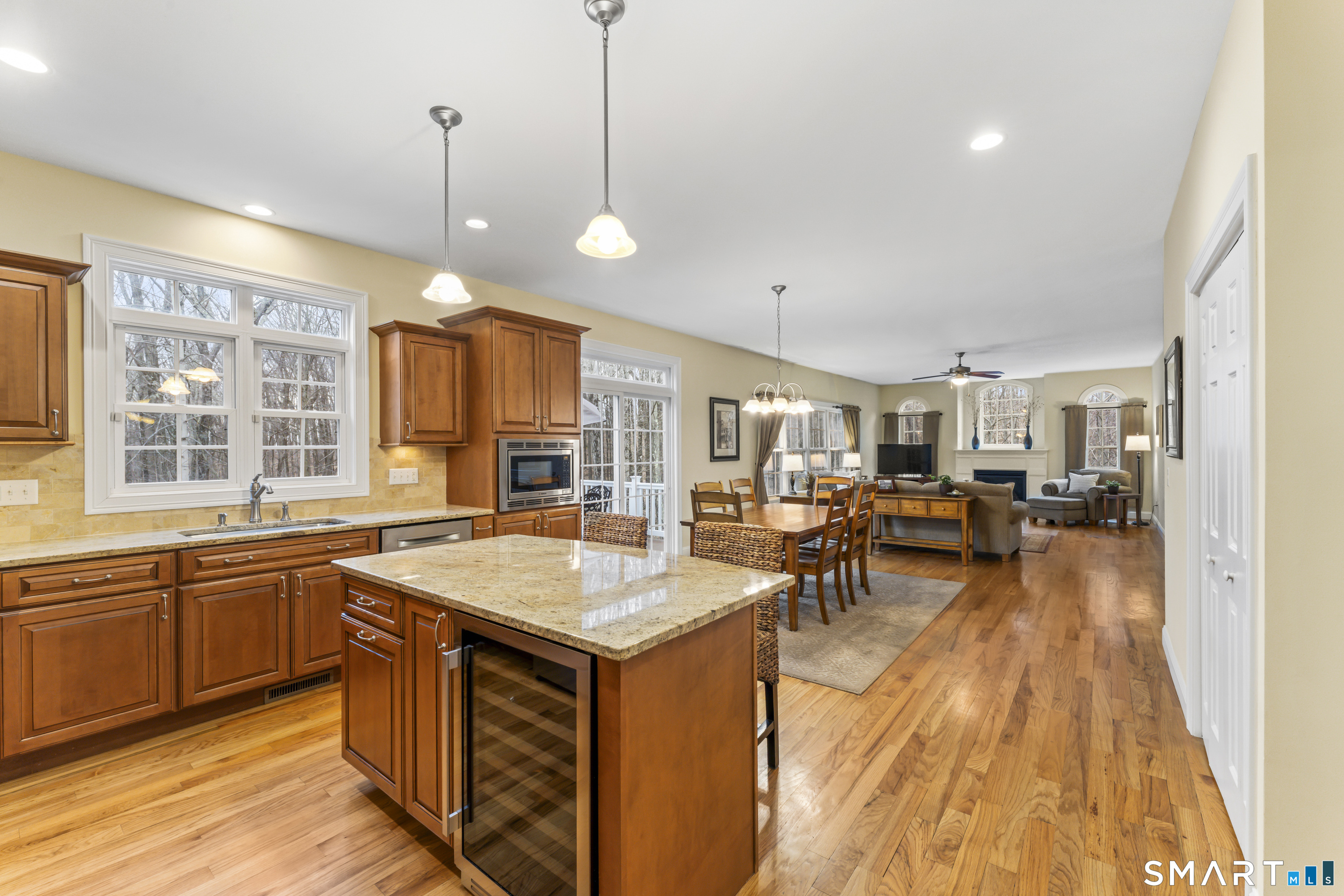 Tucked at the end of a quiet cul-de-sac, 24 Andrew Place offers a level of privacy and setting that's hard to find. From the re-sealed driveway to the mature White Pine plantings, expert landscaping, and protected nature preserve behind the home, the setting immediately stands out. Inside, the open and flowing floor plan is centered around a true chef's kitchen featuring custom cabinetry, stainless steel appliances including a wine refrigerator and new stove, and expansive granite countertops-all seamlessly connecting to the family room with a cozy fireplace. The living room has a built-in window seat and custom maple bookshelves with crown molding that add warmth and character. The finished walkout lower level is built for entertaining, highlighted by a custom cherry bar with granite countertops, built-in microwave, and mini-fridge. Upstairs, the spa-like primary suite features a beautifully updated full bath and a large California Closet walk-in. Three additional generously sized bedrooms share another well-appointed full bath. Step outside to a composite deck overlooking the peaceful wooded preserve-offering year-round privacy and a setting that's truly hard to replicate. Additional upgrades include an EV charger in the garage and a generator hookup with transfer switch. This home has been exceptionally maintained and is truly move-in ready-nothing to do but move in and enjoy. Don't miss this one!